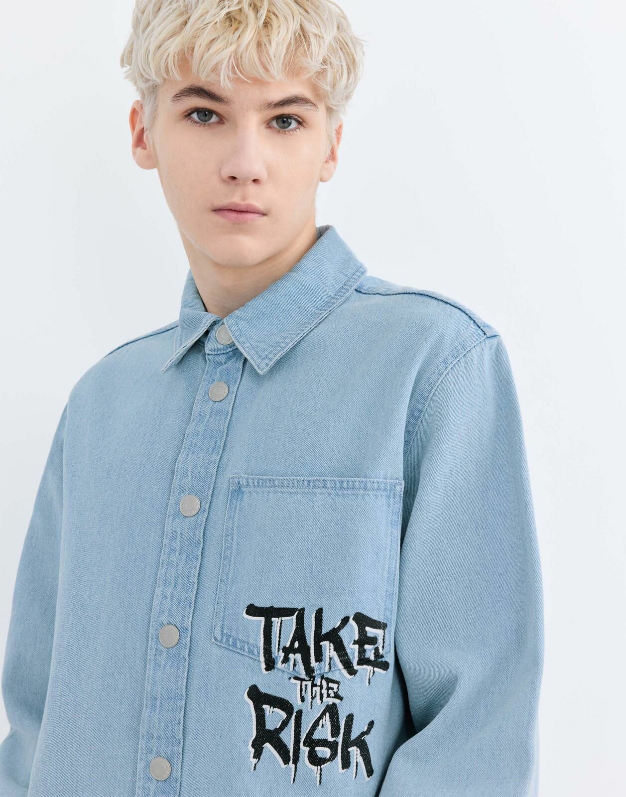 Рубашка Gloria Jeans, размер 14+/170-176, голубой, синий