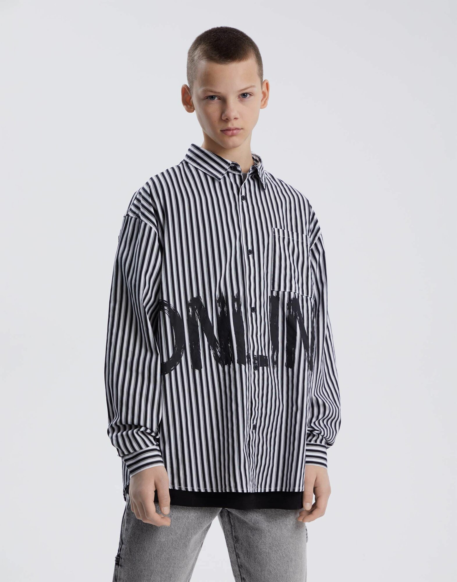 Рубашка Gloria Jeans, размер 10-12л/146-152, белый/черный