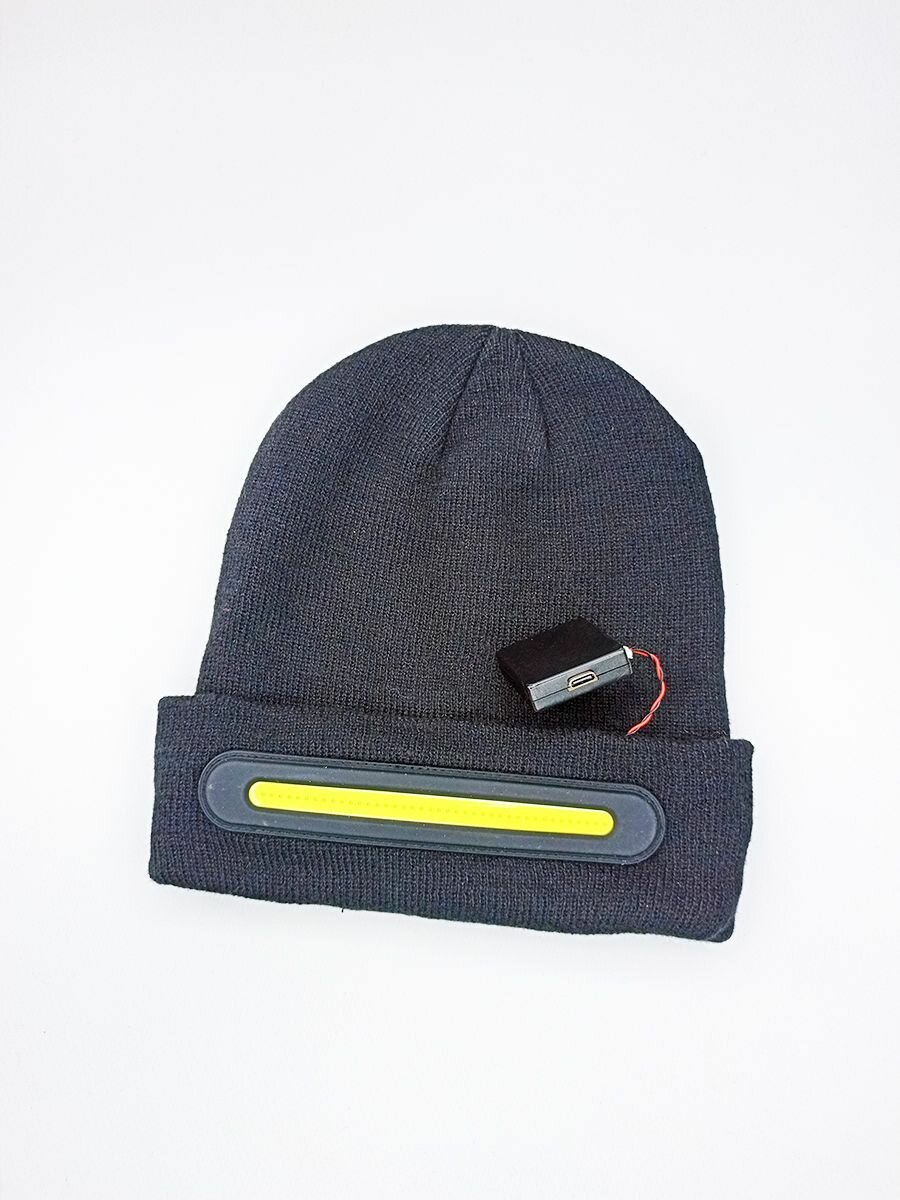 Купить Шапка-бини Фонарик для взрослых и детей, размер 52-58, черный матовый