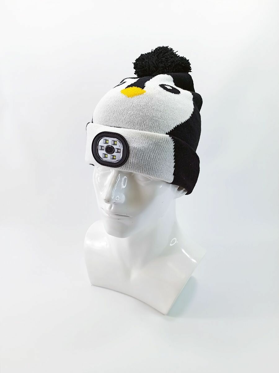 Купить Шапка Фонарик для взрослых и детей, размер 52-58, пингвины