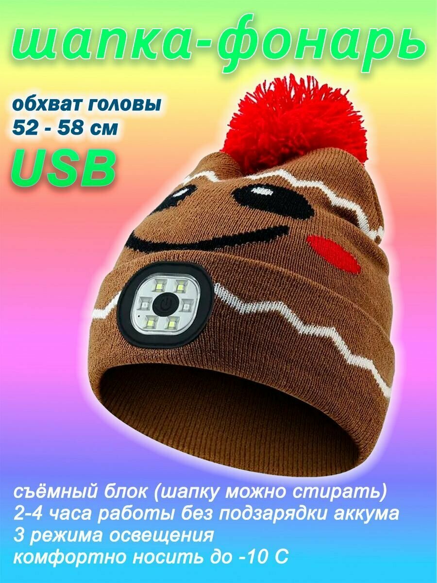 Купить Шапка Фонарик для взрослых и детей, размер 52-58