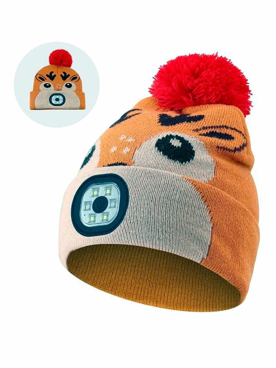 Купить Шапка Фонарик для взрослых и детей, размер 52-58, горчичный