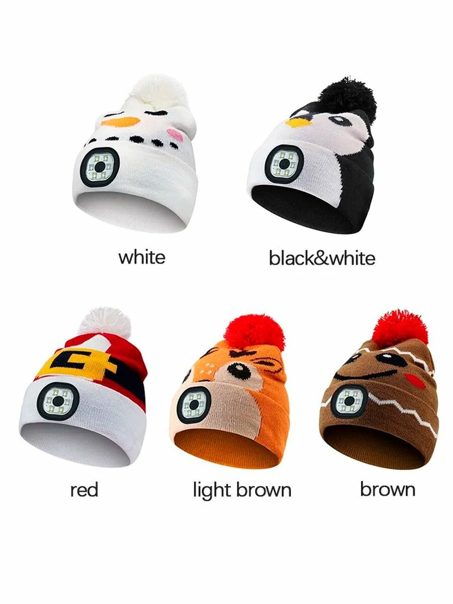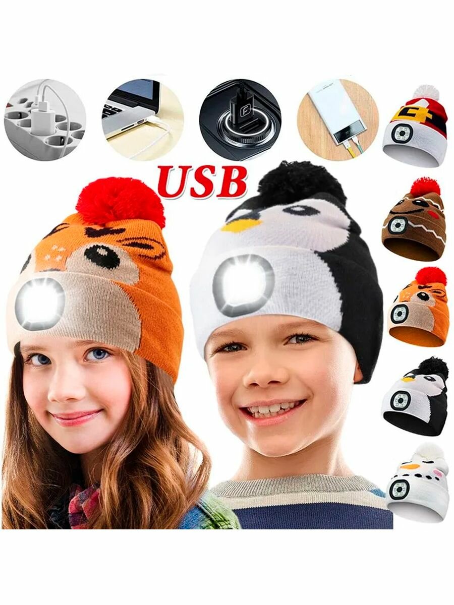 Шапка Фонарик для взрослых и детей, размер 52-58, пингвины