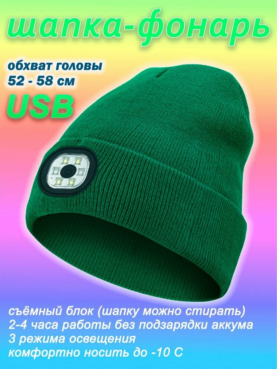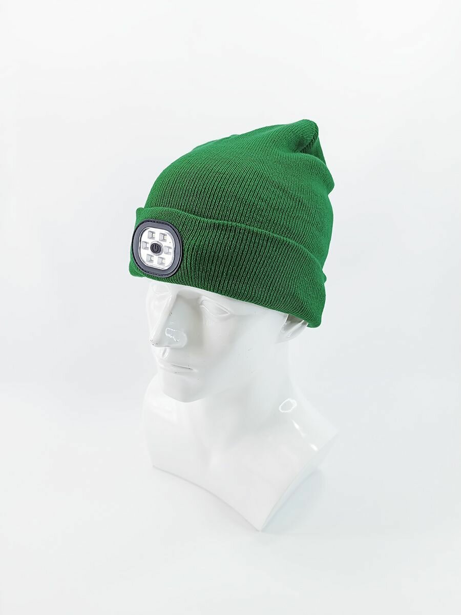 Купить Шапка-бини Фонарик для взрослых и детей, размер 52-58, темно-зеленый