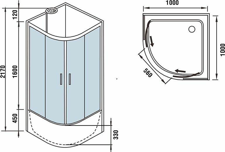 | Форма поддона | четверть круга |