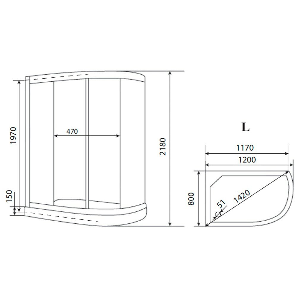 | Форма поддона | асимметричная |
