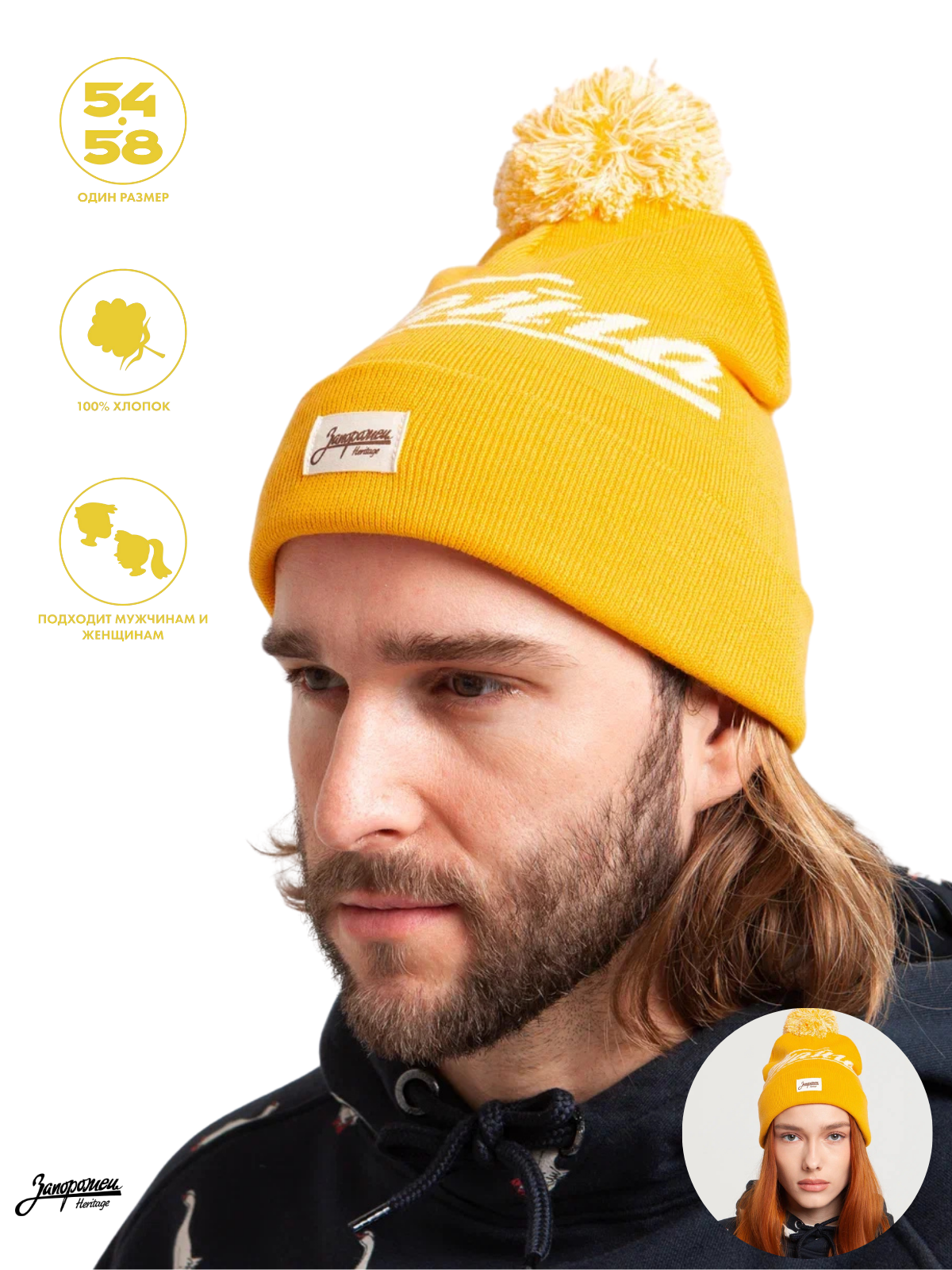 Шапка-бини Запорожец Heritage для мужчин и женщин, размер 56, желтый интересное:
