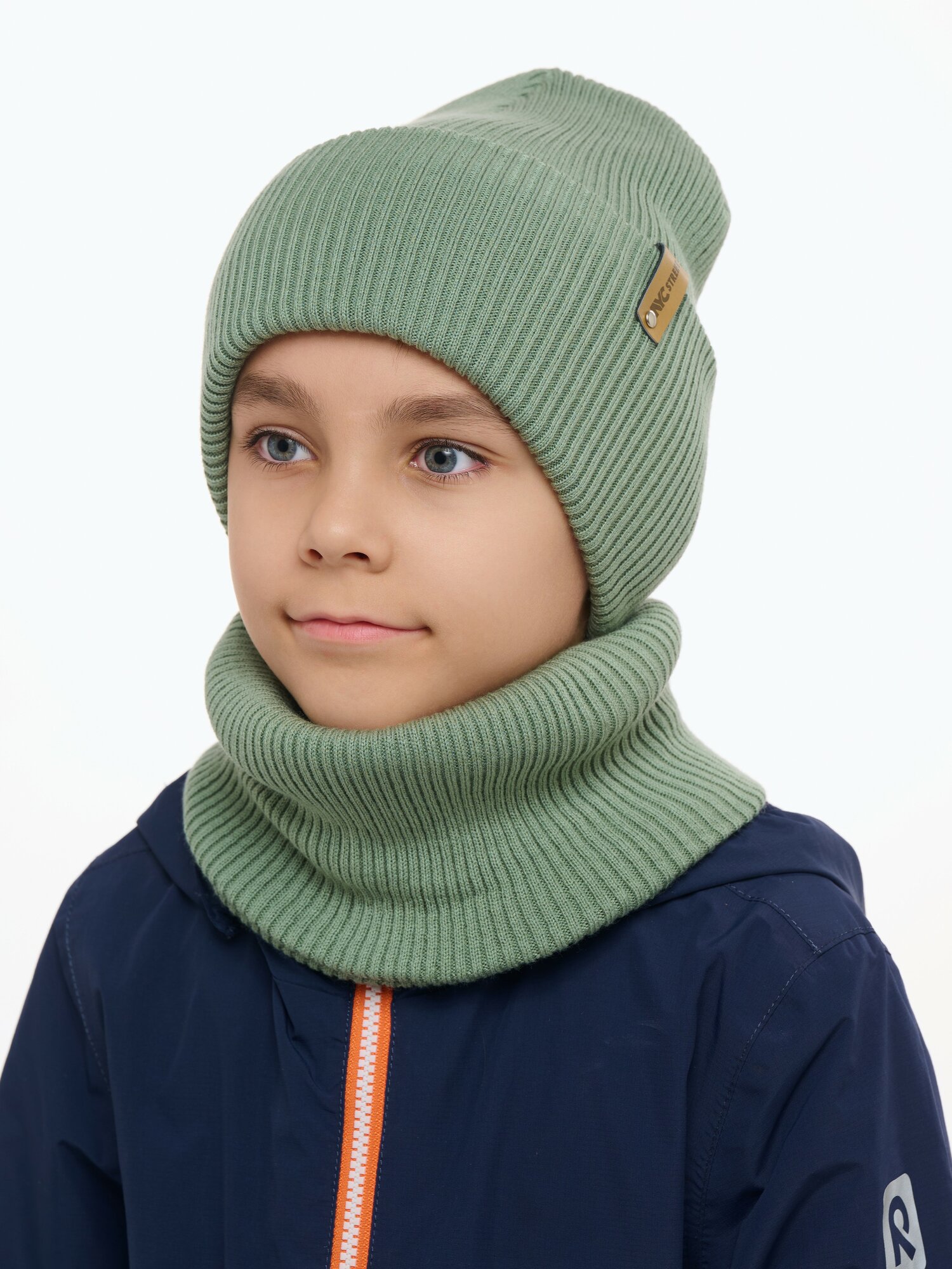 Шапка-бини NYCkids для детей, размер 54-58, оливковый