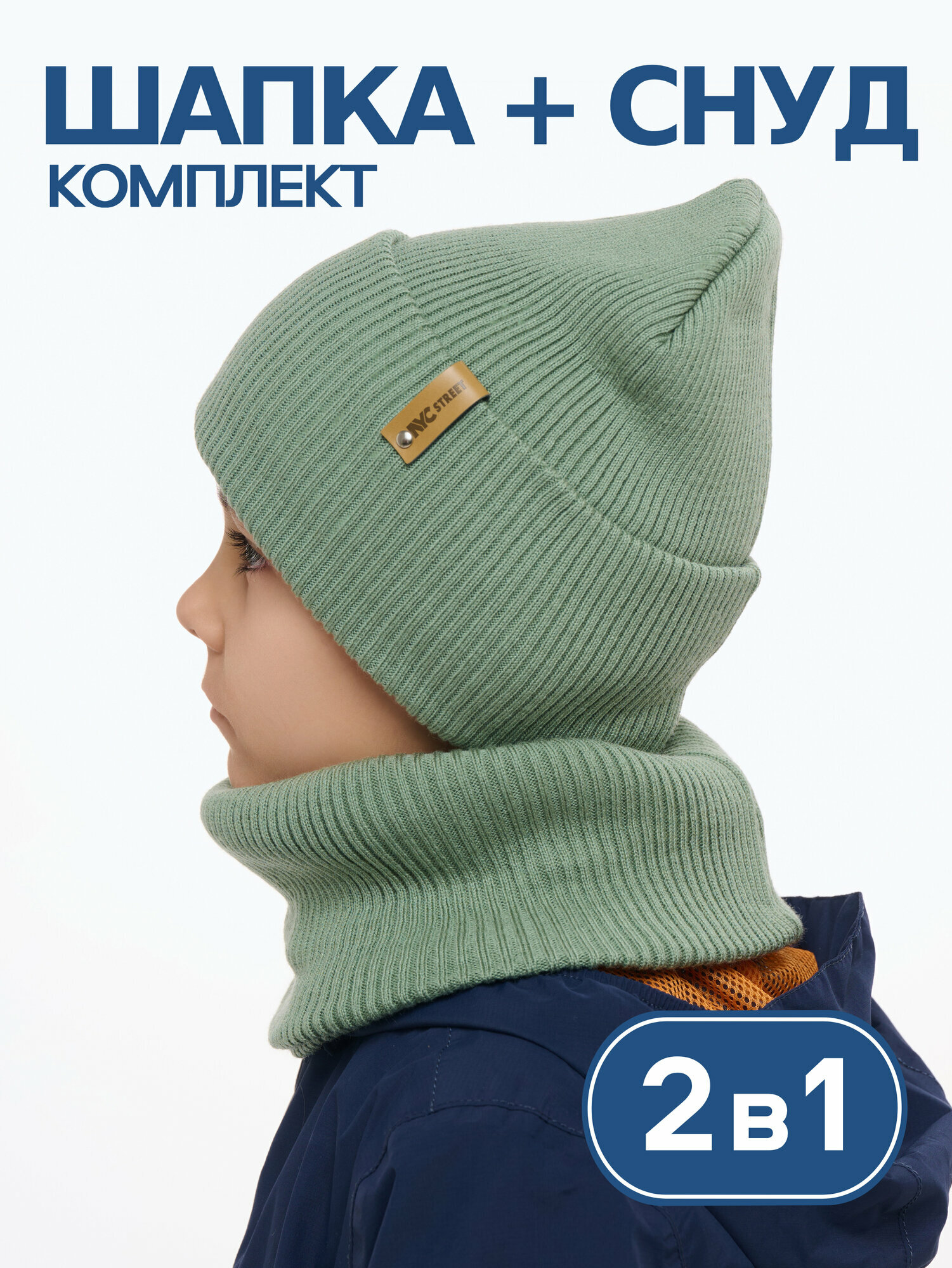Шапка-бини NYCkids для детей, размер 54-58, фисташка/оливковый
