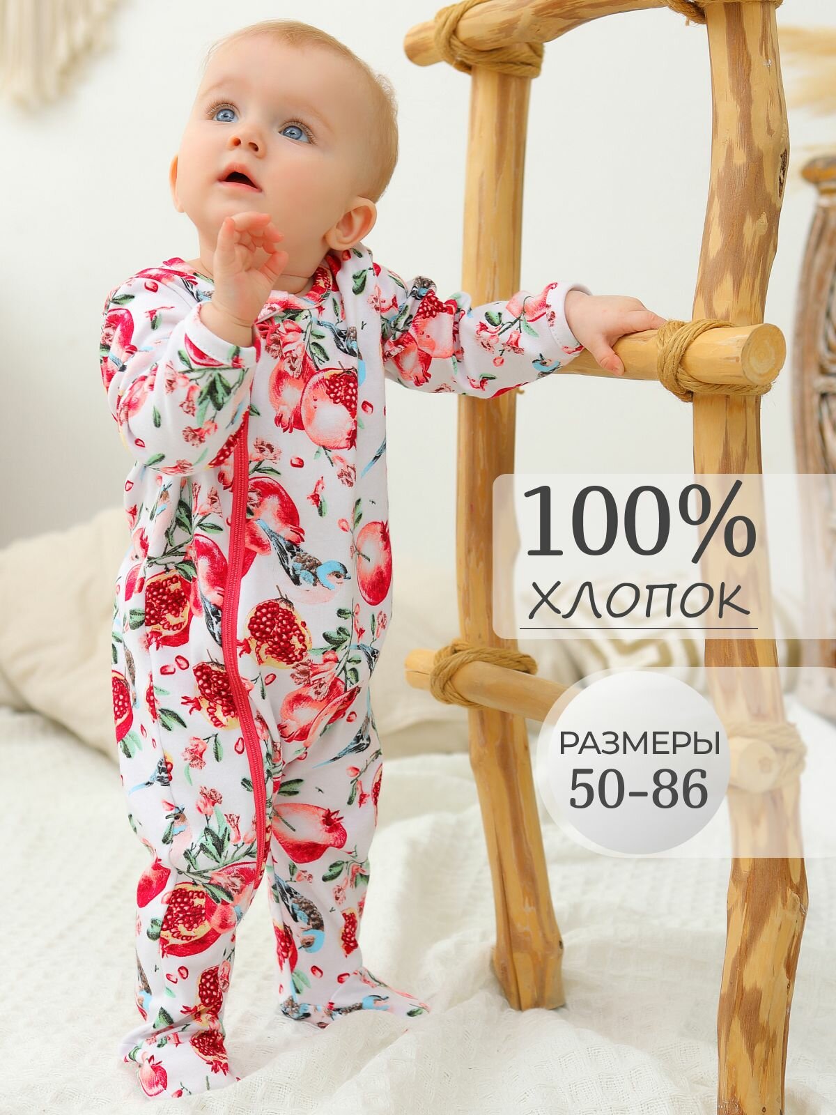 Комбинезон BABYGLORY Baby smile, закрытая стопа, размер 24-74, белый