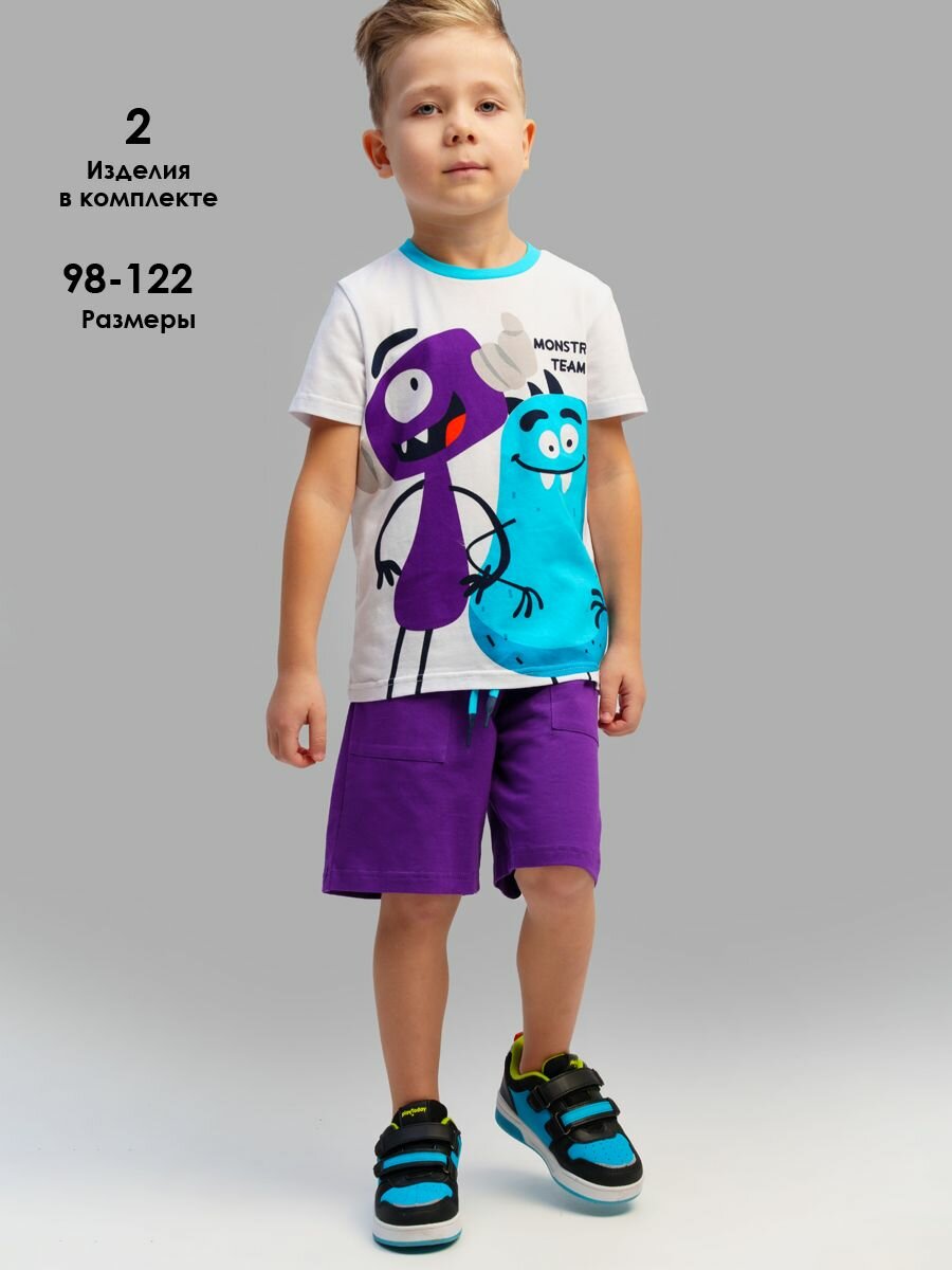 Купить Комплект одежды playToday Весна-лето 2025, размер 122, белый/фиолетовый