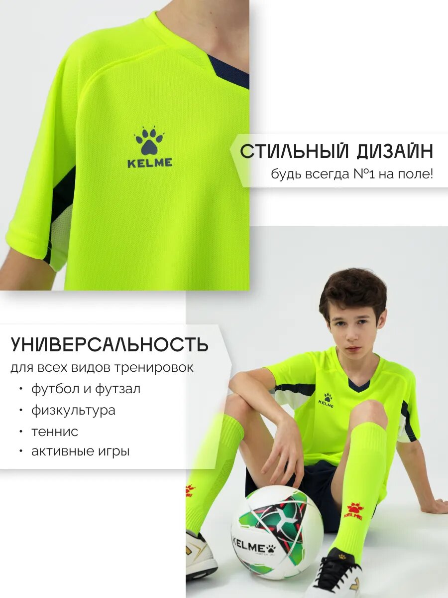 СохранитьФорма спортивная Kelme футбольная форма Short-Sleeved Football Suit футбольная форма для мальчиков, размер 140, салатовый/темно-синий интересное: