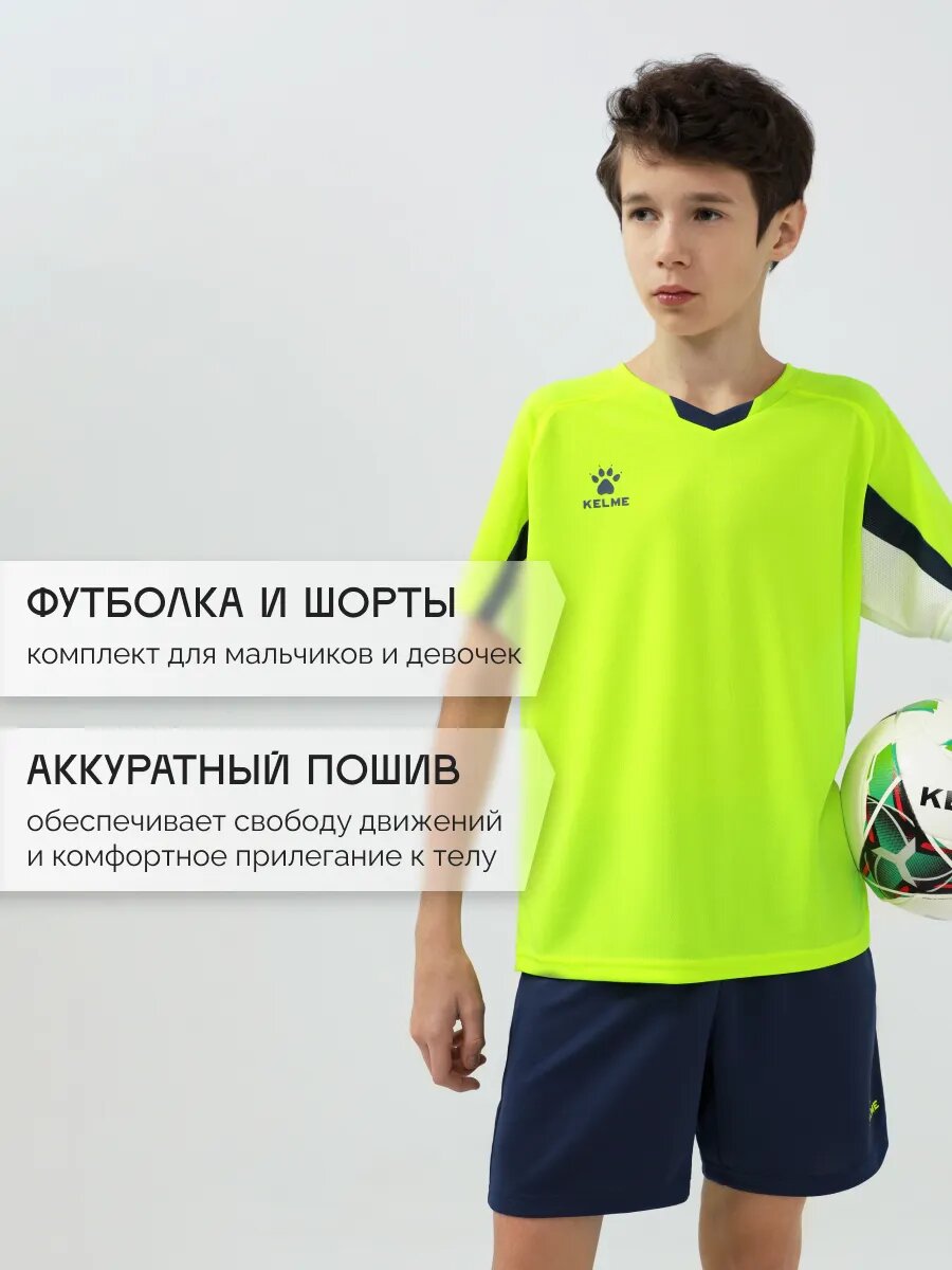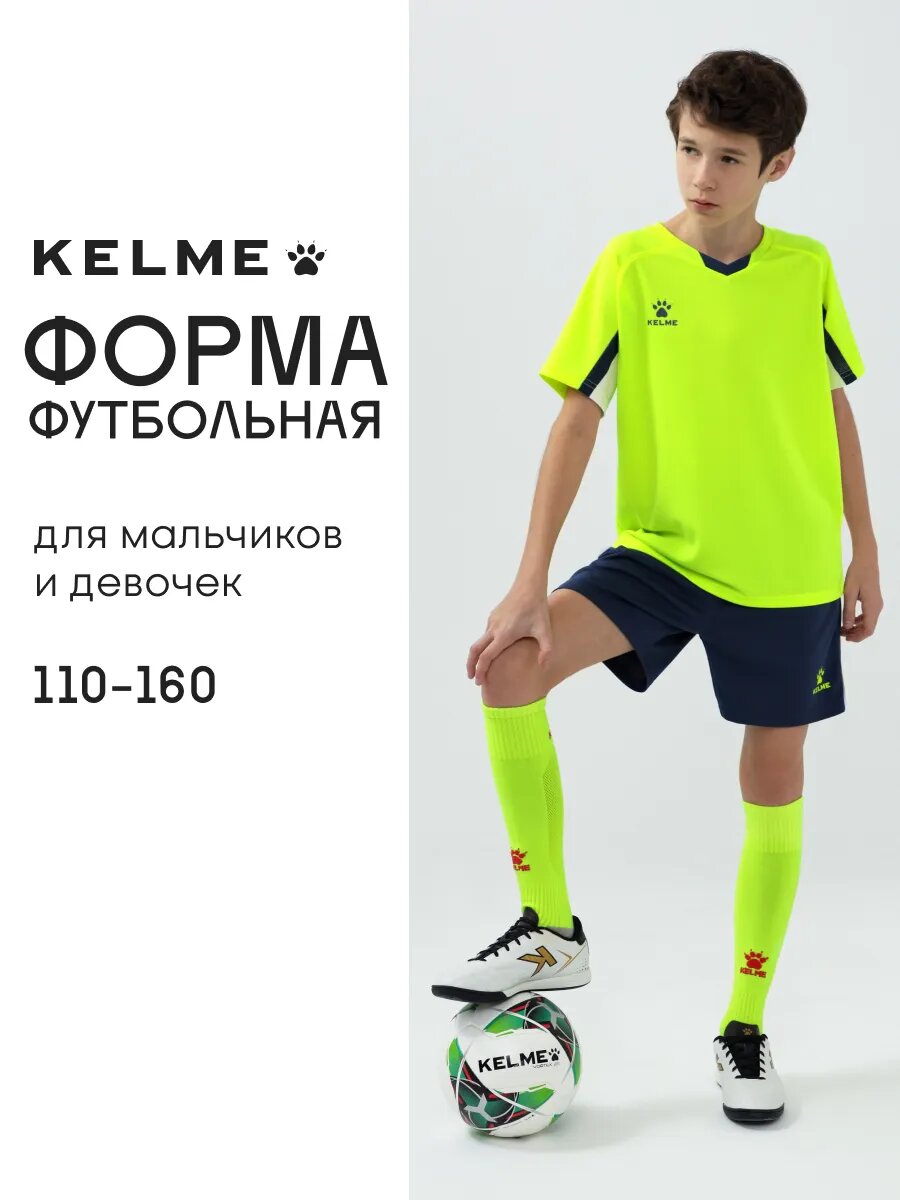 Форма спортивная Kelme футбольная форма Short-Sleeved Football Suit футбольная форма для мальчиков, размер 160, салатовый/темно-синий