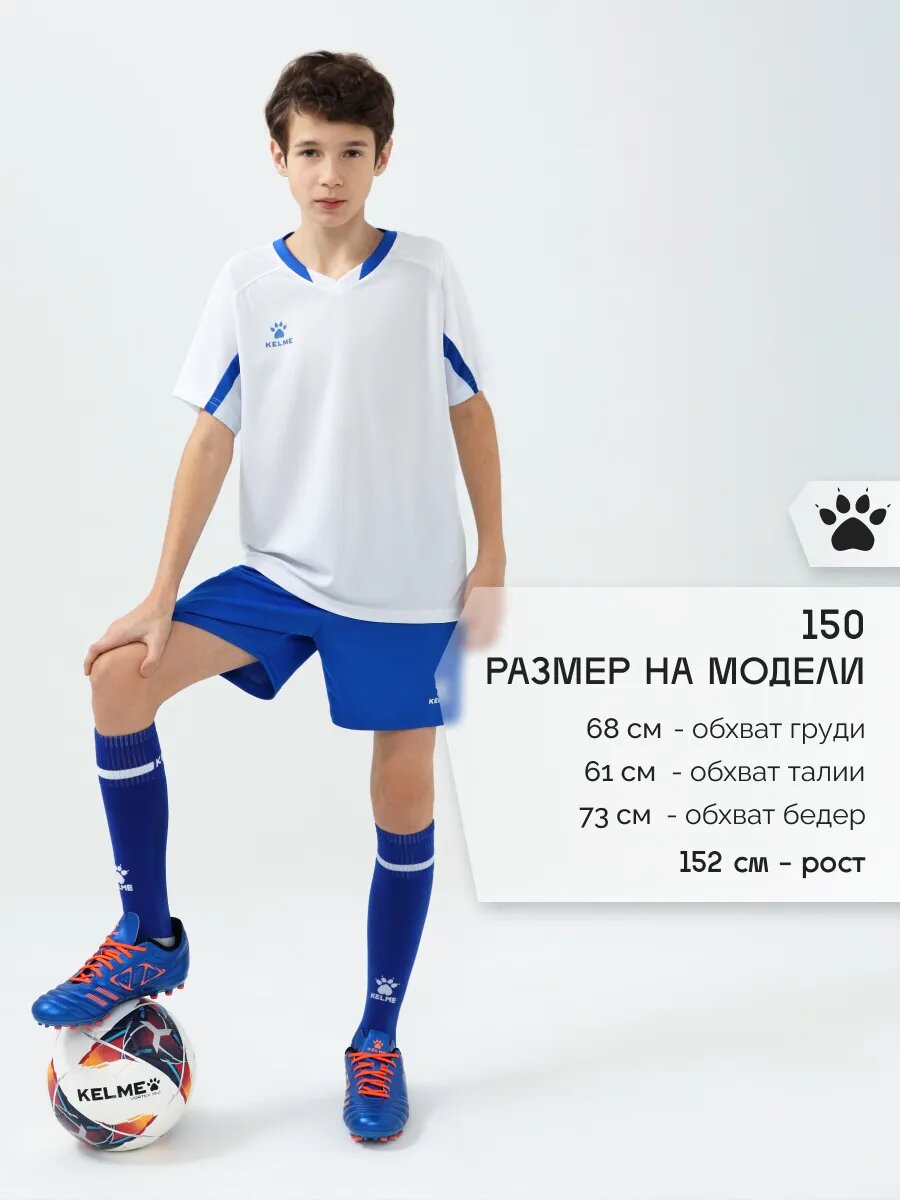 Форма спортивная Kelme футбольная форма Short-Sleeved Football Suit футбольная форма для мальчиков, размер 150, белый/синий