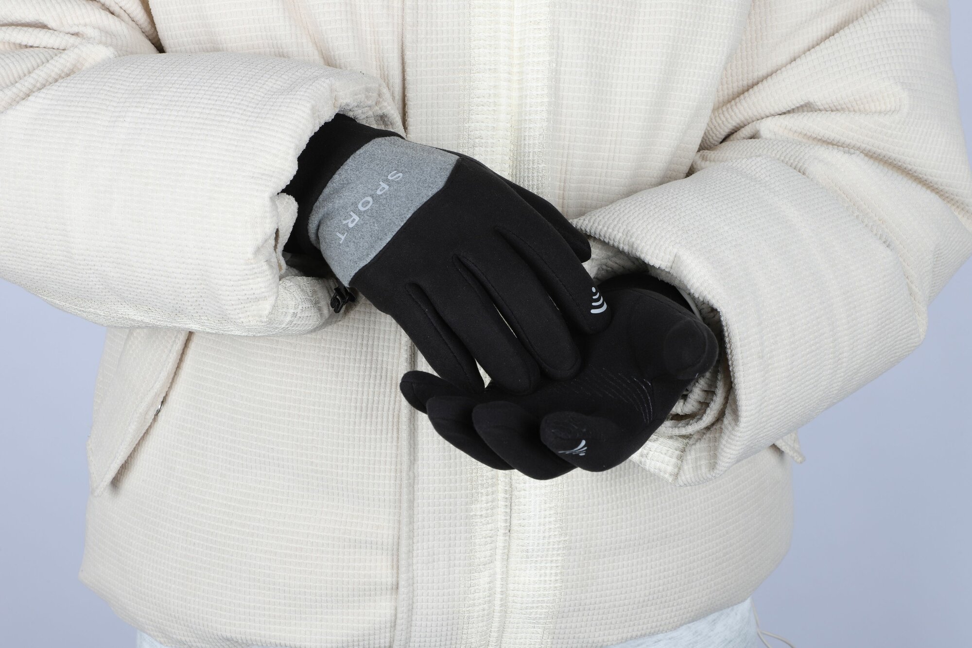 Перчатки RINREY для женщин, размер 25, серый/белый