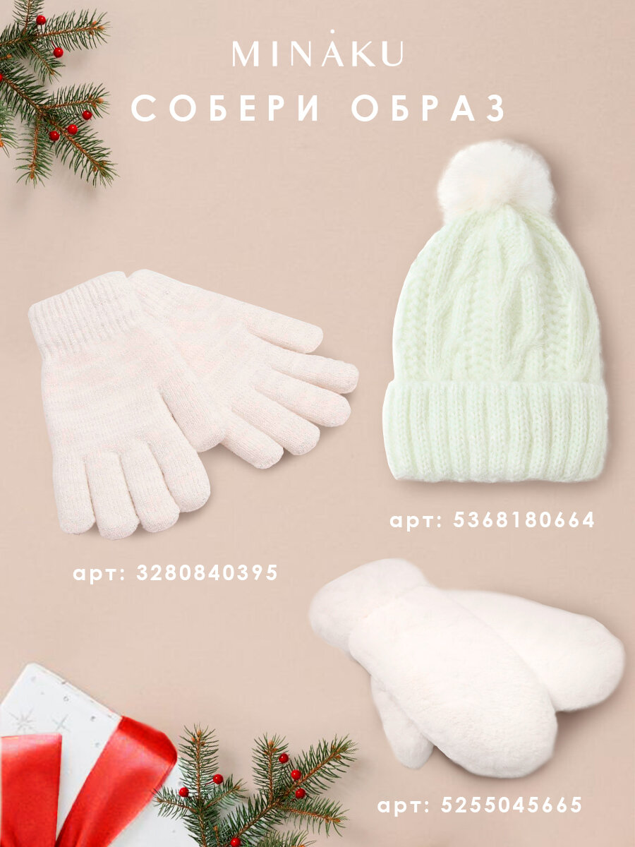 Купить Перчатки Minaku Зимняя коллекция для женщин, размер 17, белый