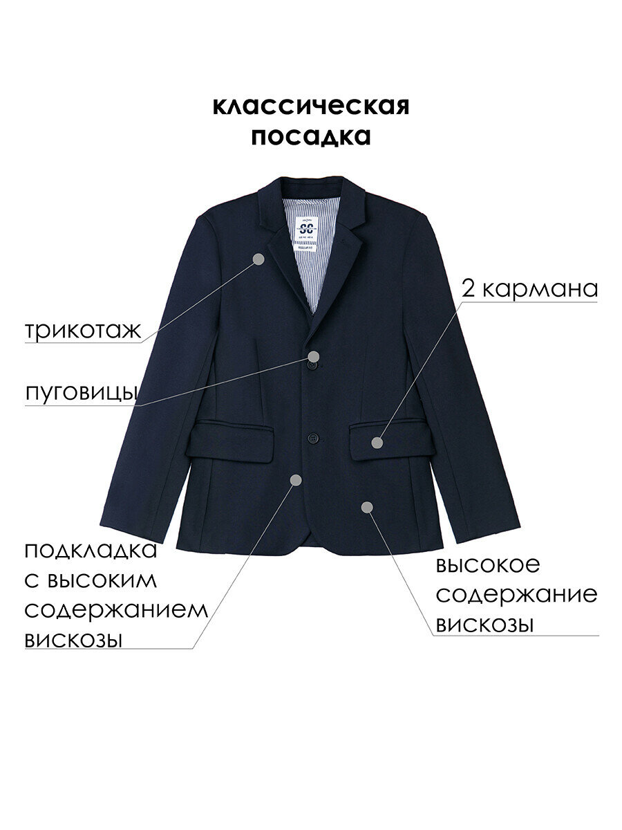Школьный пиджак playToday, размер 134, темно-синий интересное: