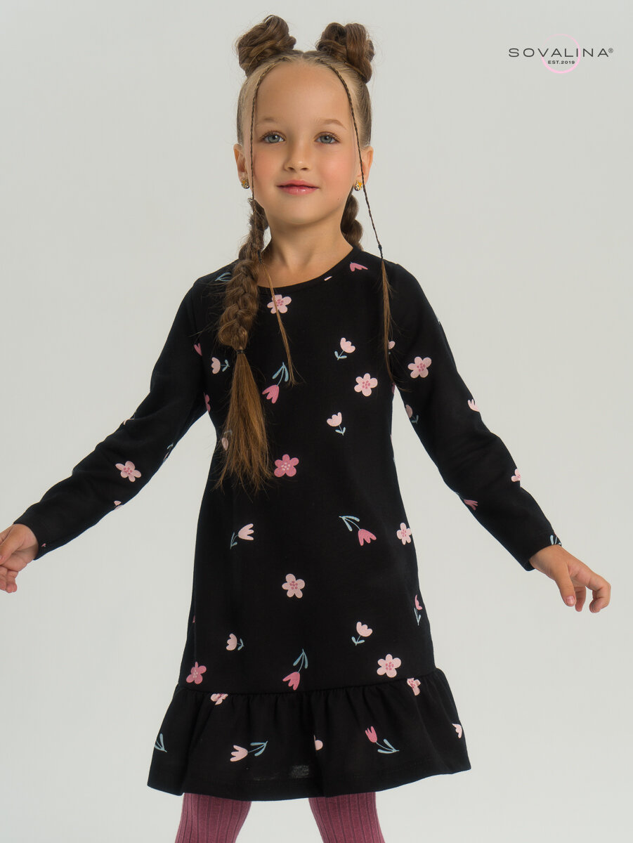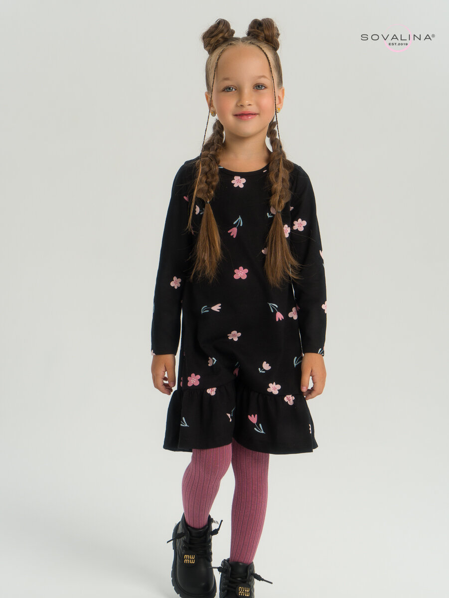 Школьное платье SOVALINA, размер 104, черный, розовый интересное: