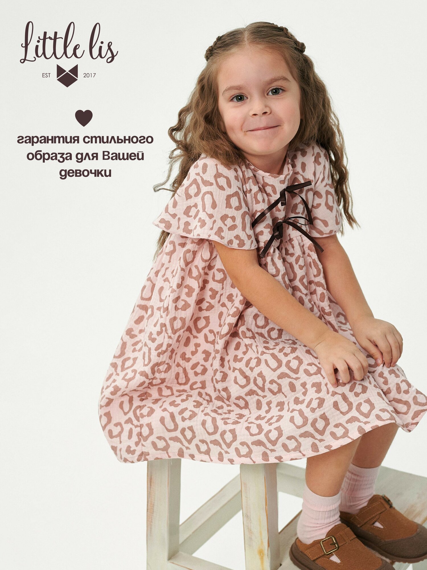 Школьное платье Little Lis, размер 122-128, бежевый леопард