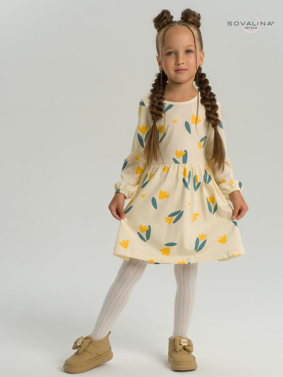 Школьное платье SOVALINA, размер 116, бежевый, желтый интересное: