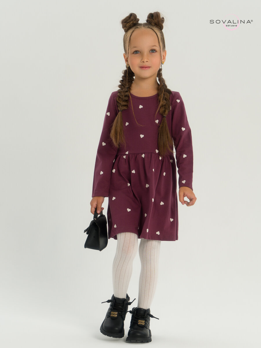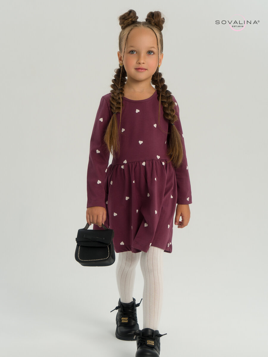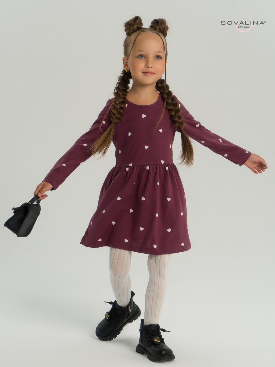 Платье SOVALINA, размер 140, бордовый, белый интересное: