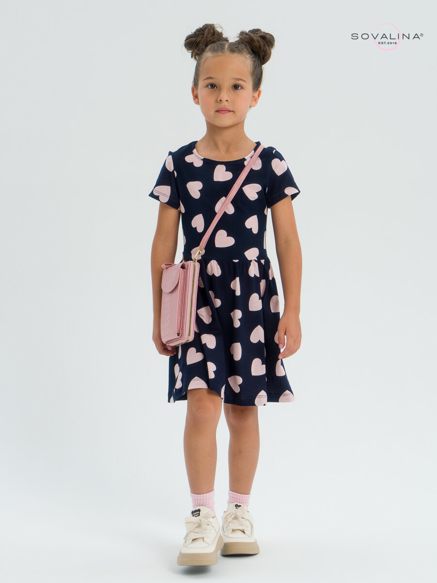 Платье SOVALINA, размер 104, синий, розовый интересное:
