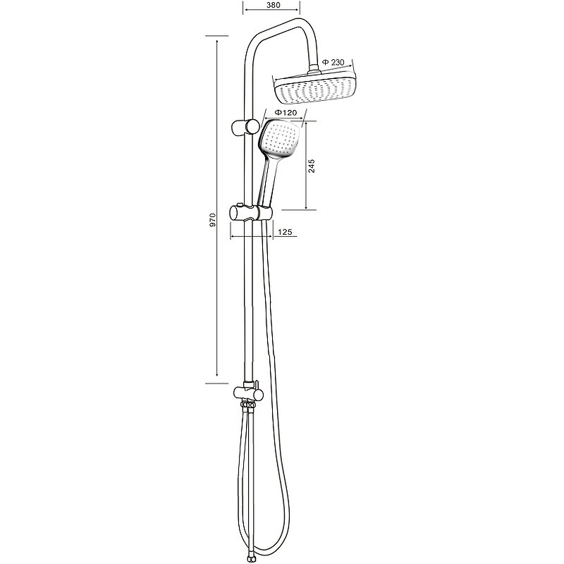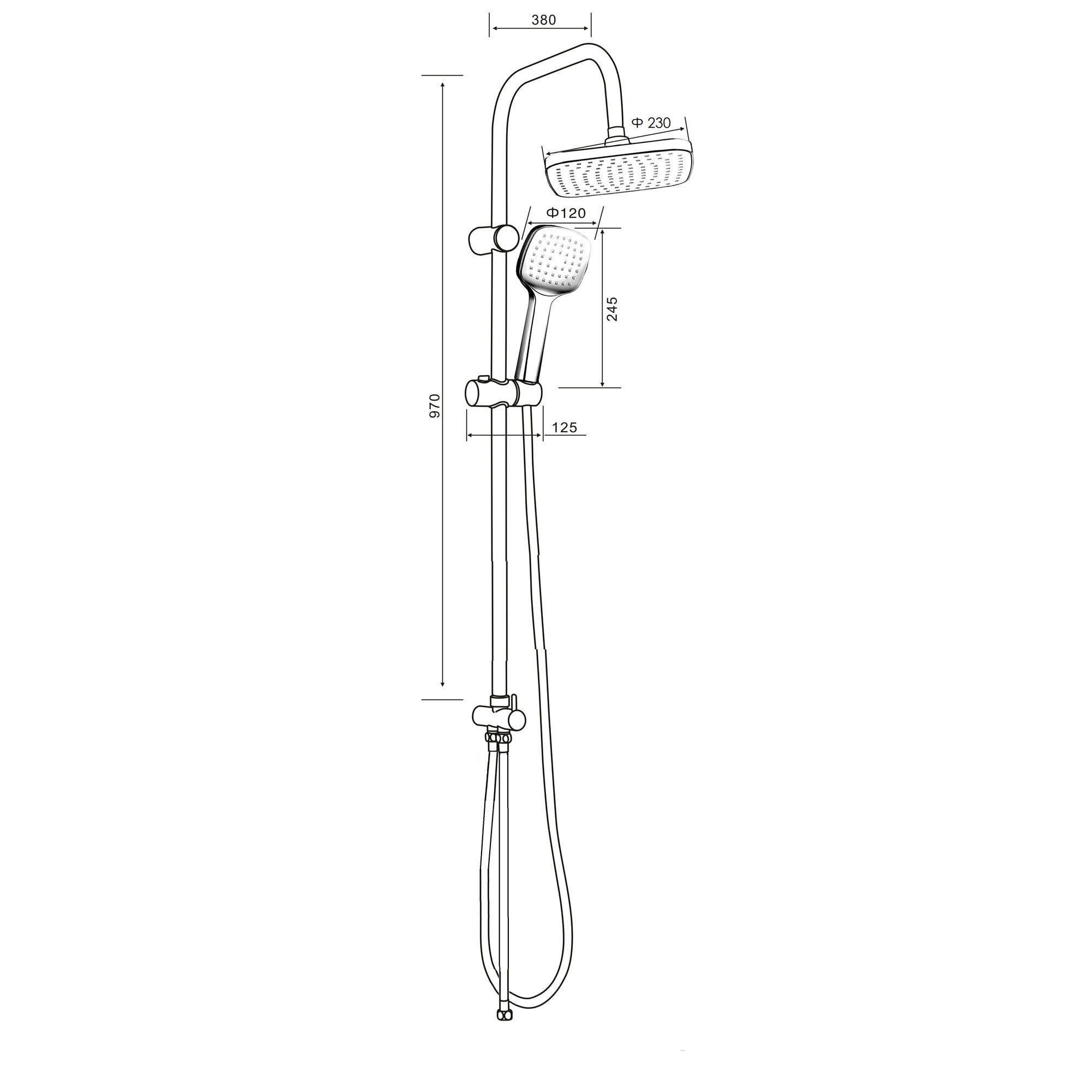 | Дополнительная информация | высота стойки для душа: 970 мм; диаметр душевой лейки: 120 мм; длина верхнего душа: 265 мм; ширина верхнего душа: 265 мм |