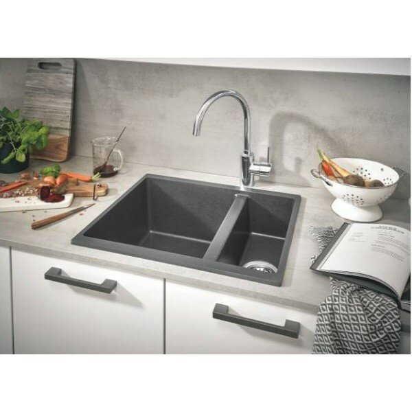 Кухонная мойка Grohe K500 композитная, с 2 чашами, 555x460мм, серый гранит 31648AT0