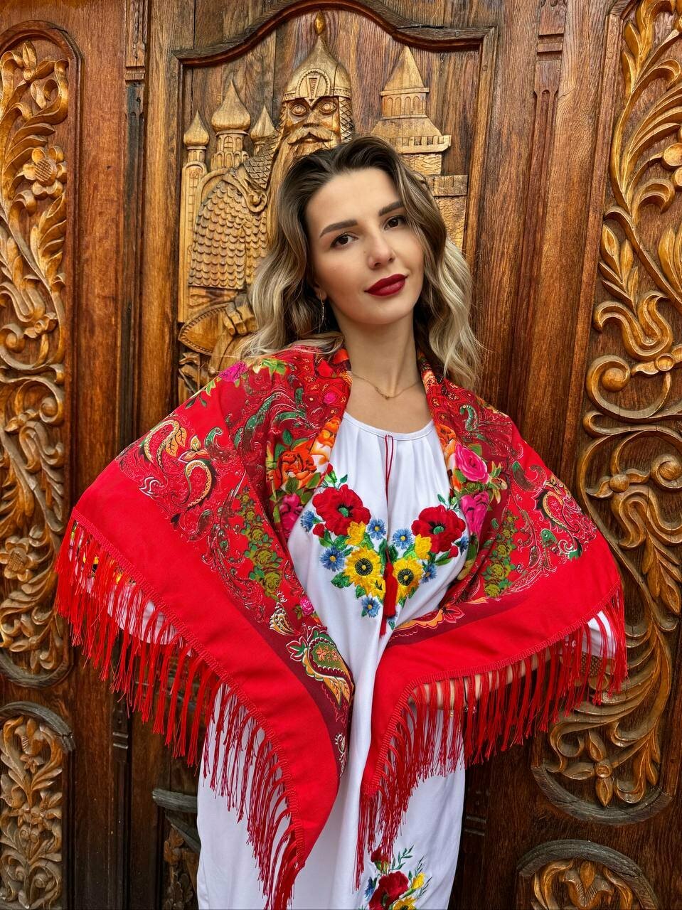 Платок КОСЫНКА для женщин,120х120 см, красный