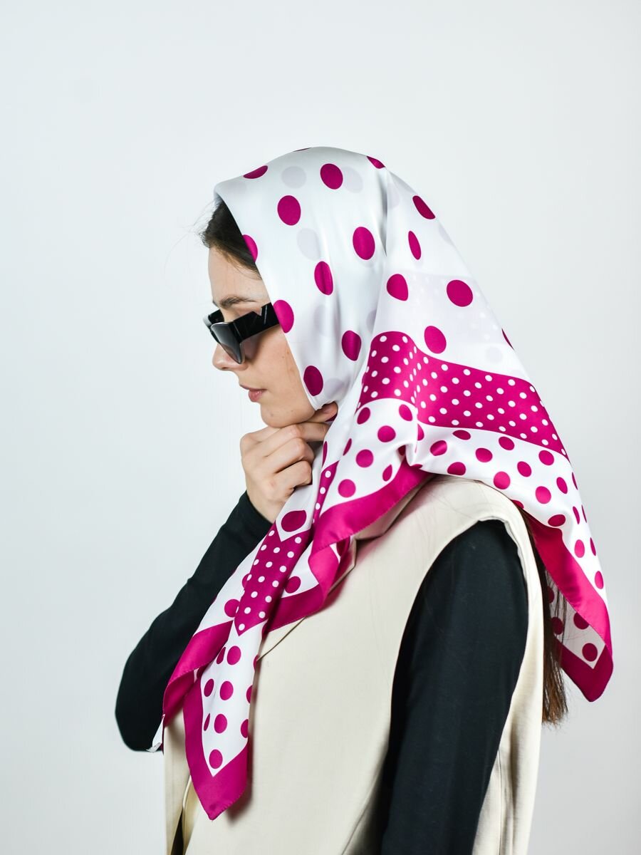 Купить Платок VENERA для женщин,90х90 см, фуксия, белый