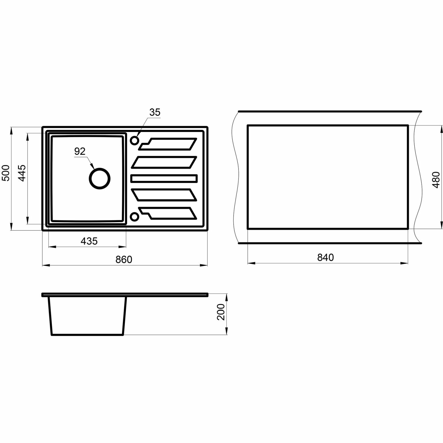 СохранитьКухонная мойка кварцевая Granula GR-8601 прямоугольная с крылом, врезная, чаша 435х445, цвет графит (8601bg) интересное: