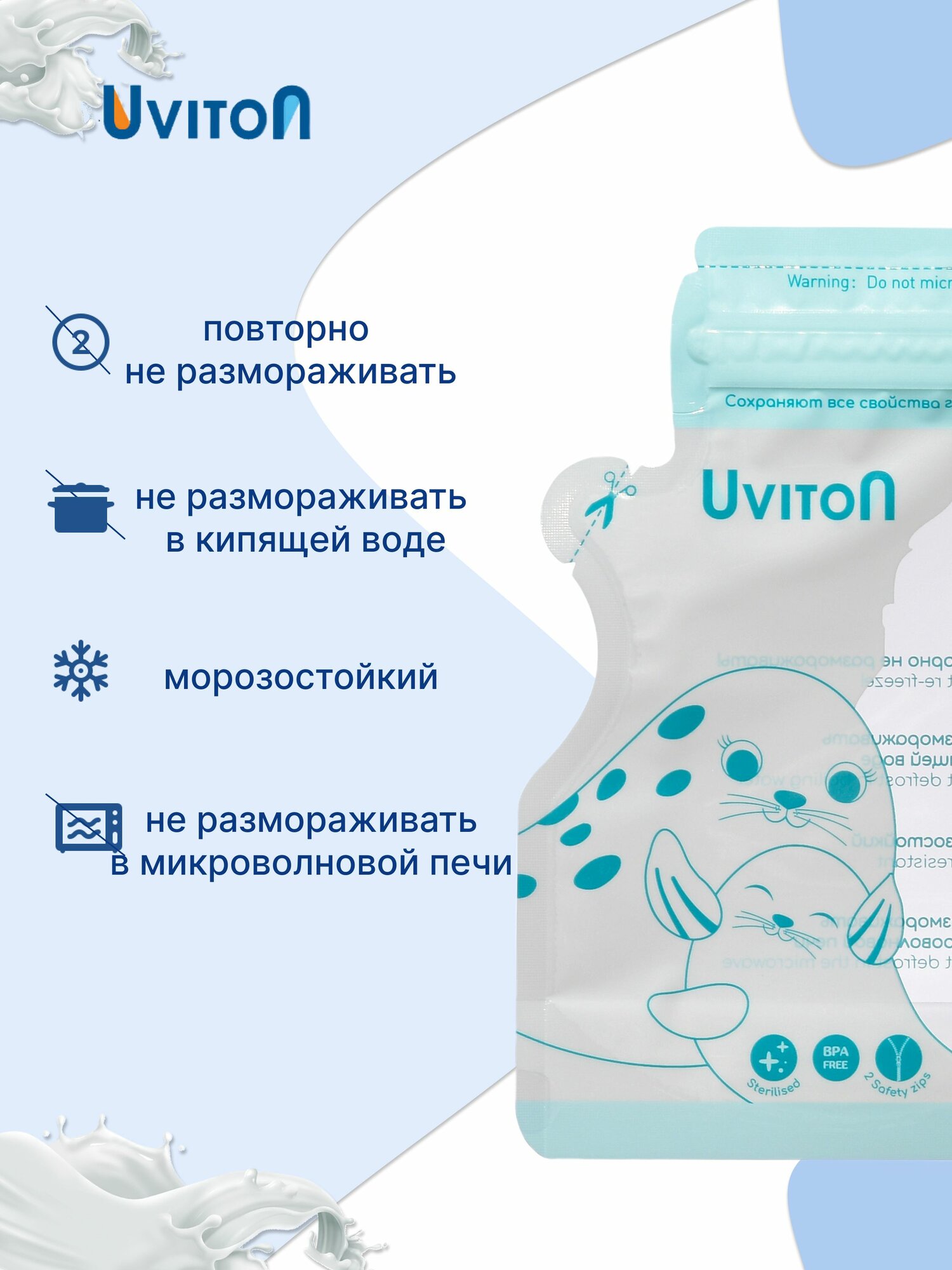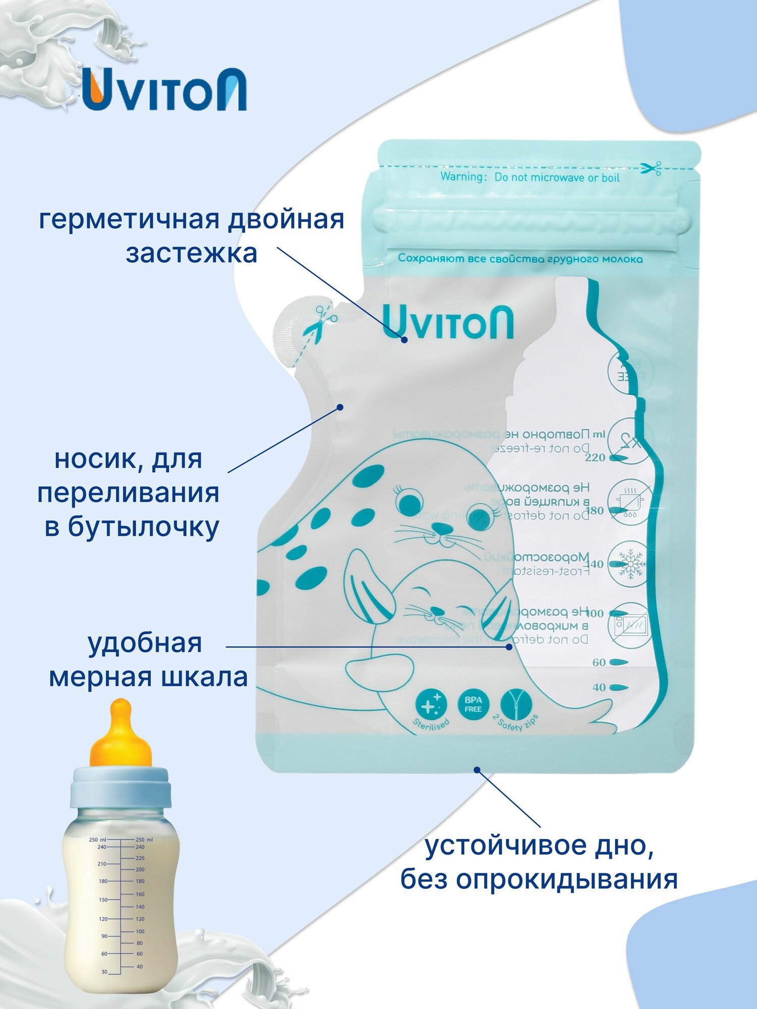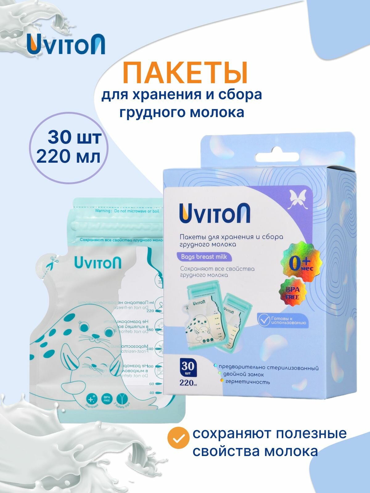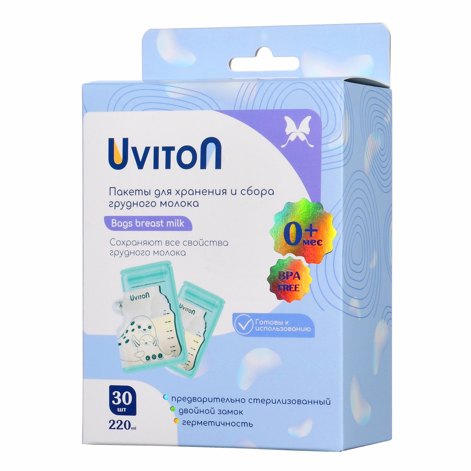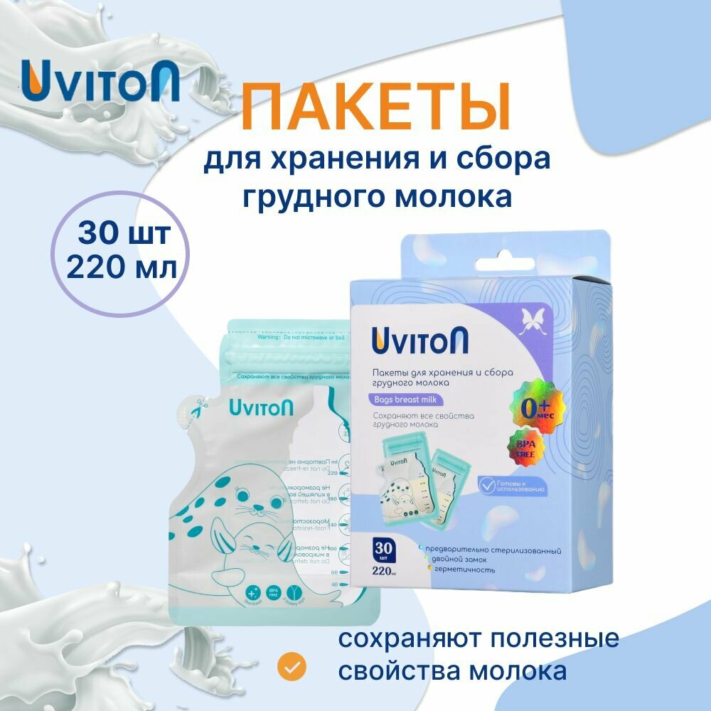 Пакеты для хранения и заморозки грудного молока с двойной застежкой, стерильные 220 мл, 30 шт. интересное: