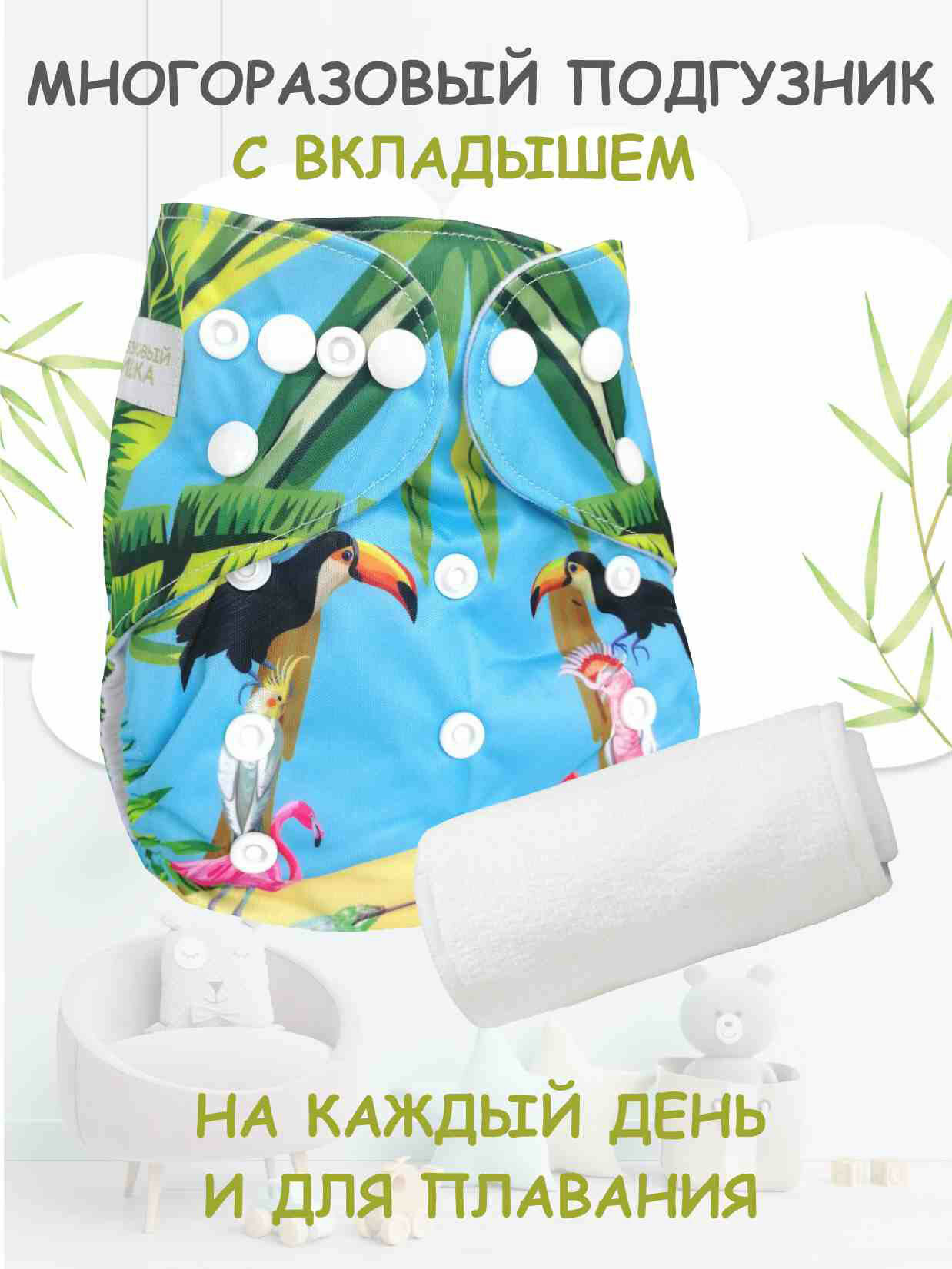 Многоразовый подгузник "Бамбуковый мишка" Классика Туканы + 1 вкладыш в комплекте микрофибра