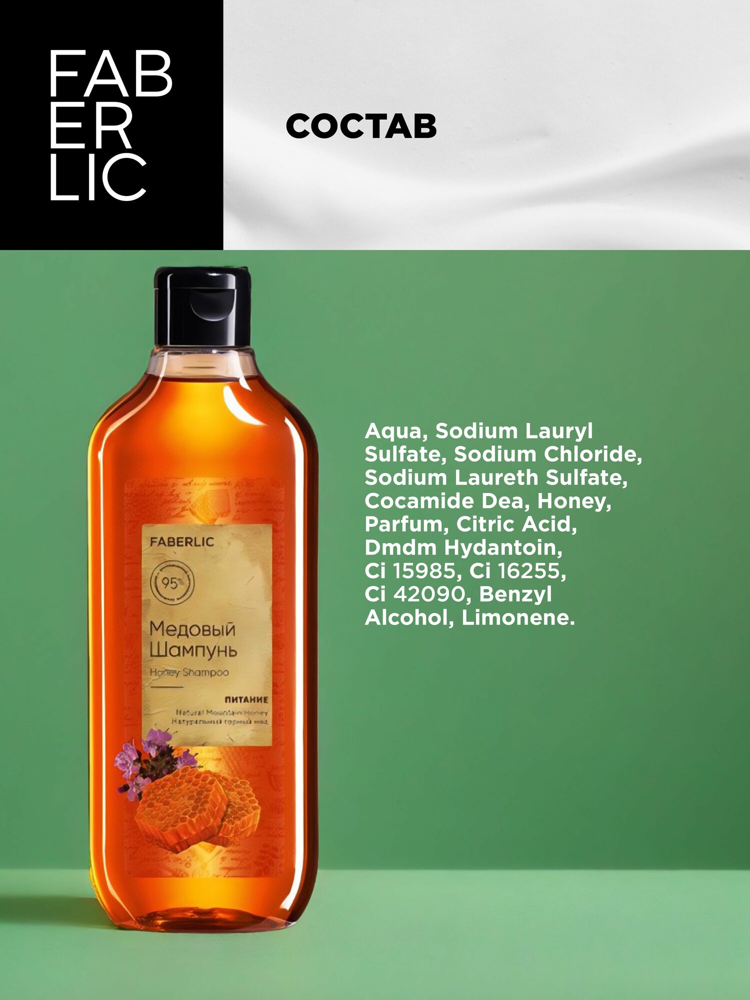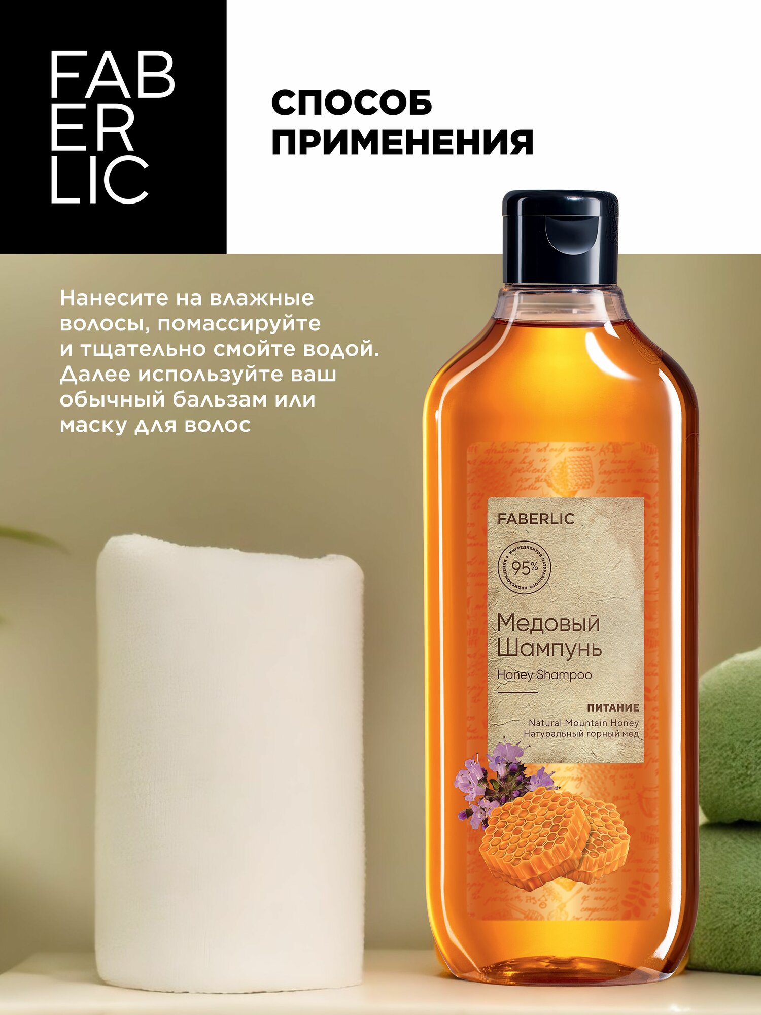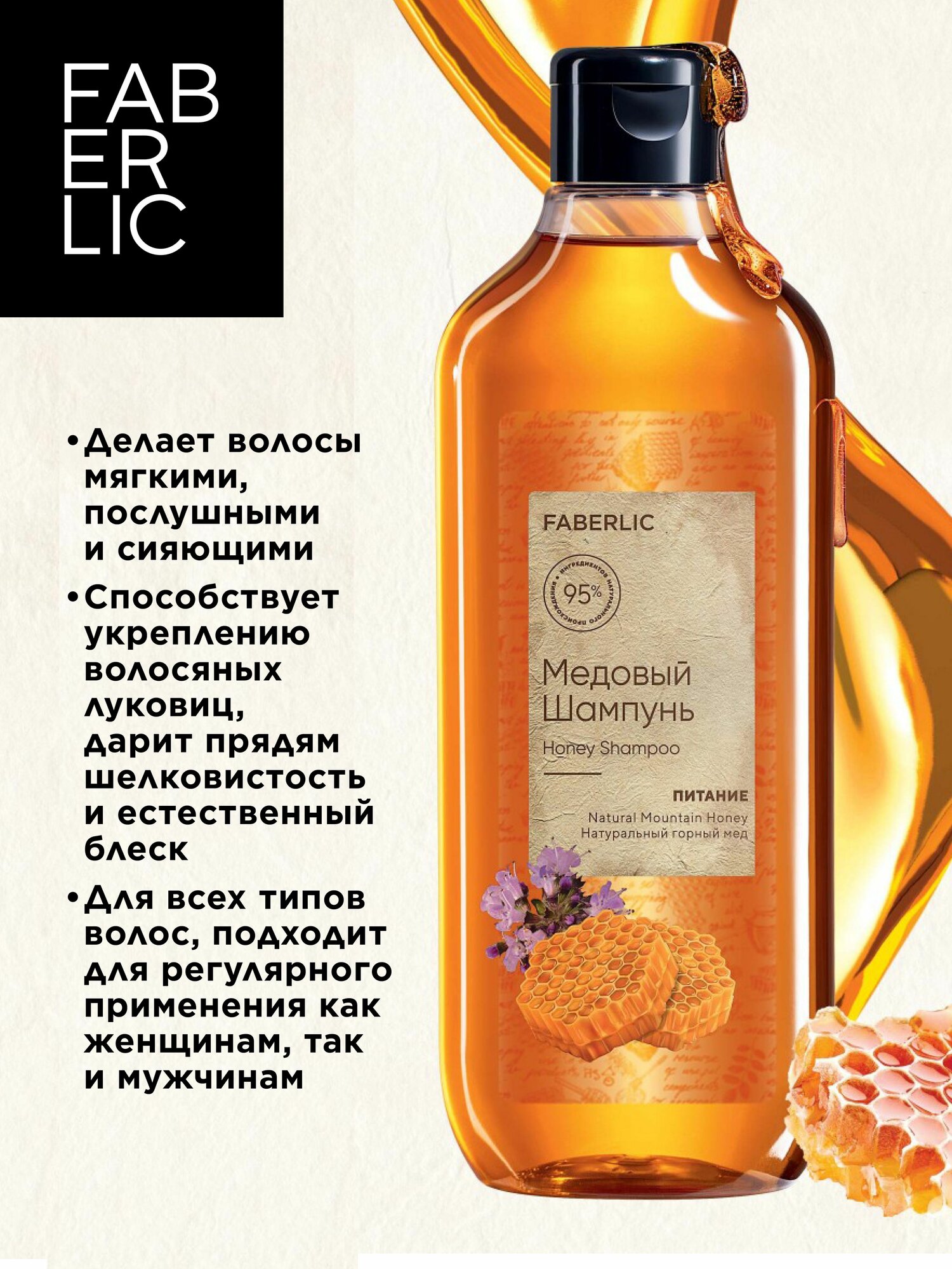 Faberlic Шампунь для волос женский, мужской, медовый "Питание", 380 мл интересное: