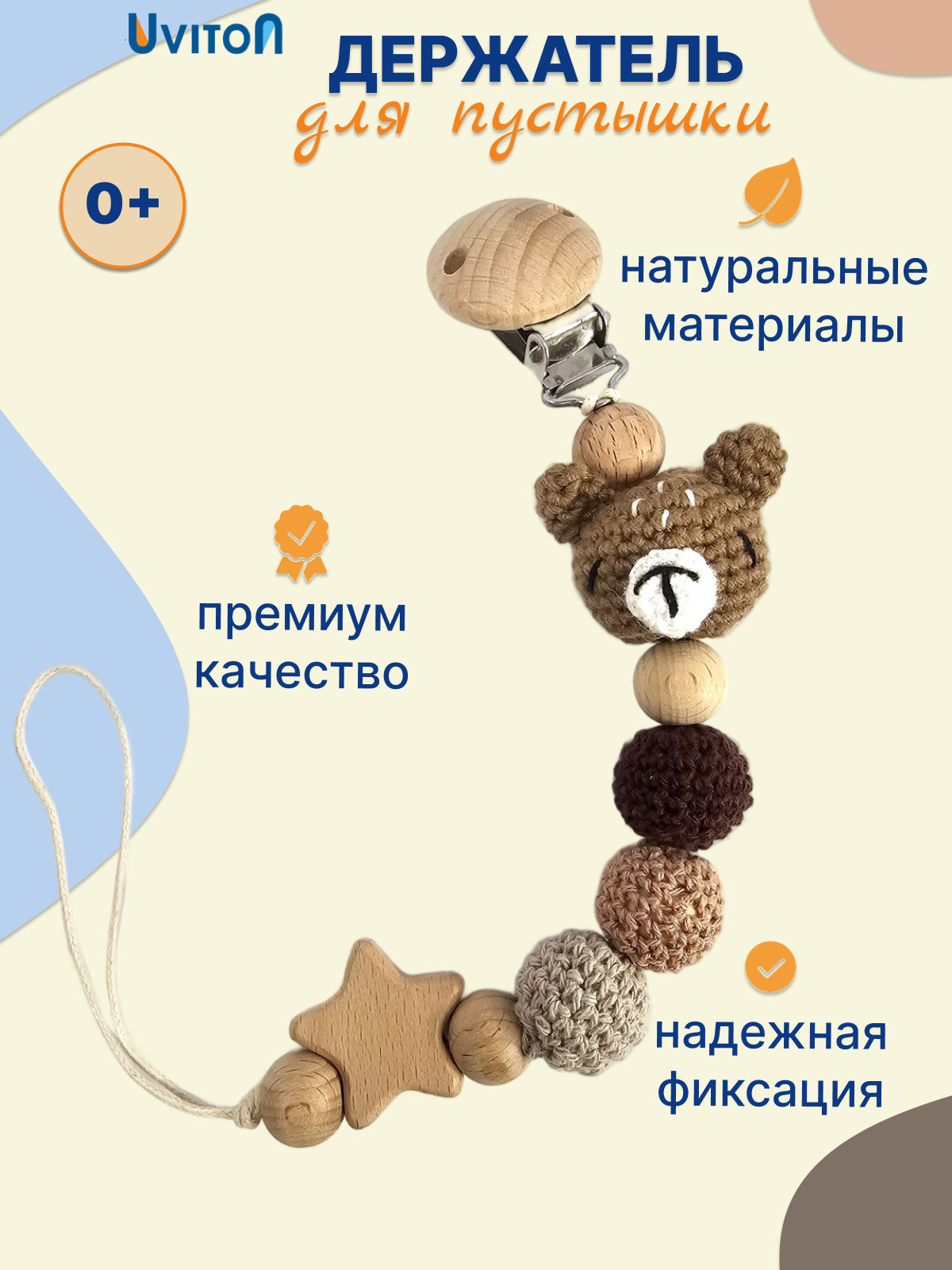 Держатель для соски-пустышки Uviton, деревянный интересное: