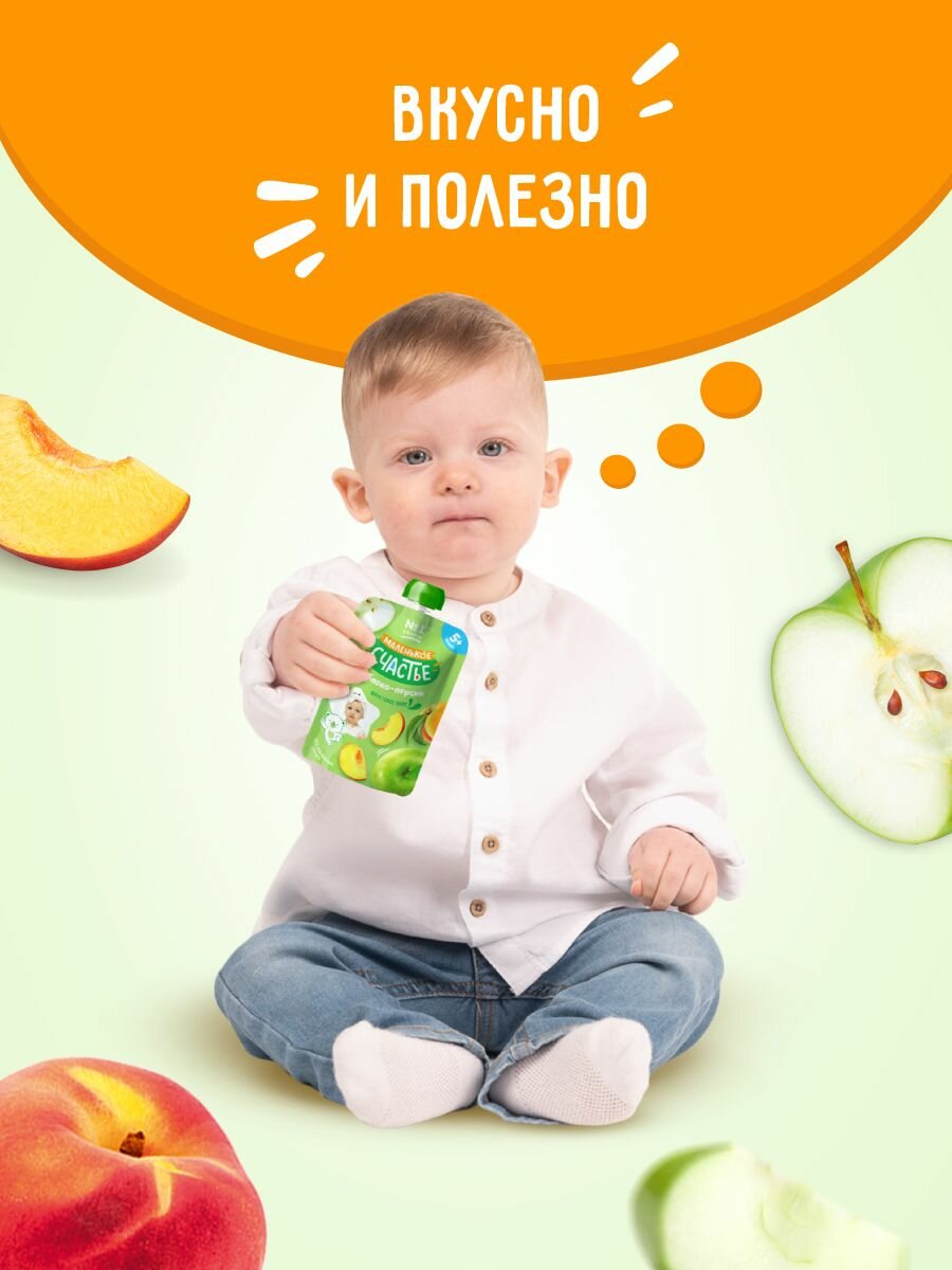 Фруктовое пюре Маленьке счастье Яблоко-персик 12 шт по 90г с 5 месяцев без сахара интересное: