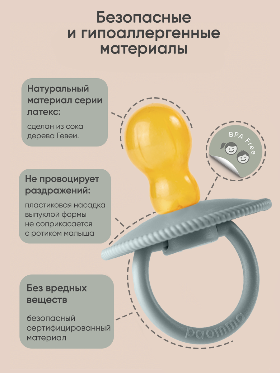 Paomma / Соска пустышка классическая латексная 6-18 месяцев, для новорожденных