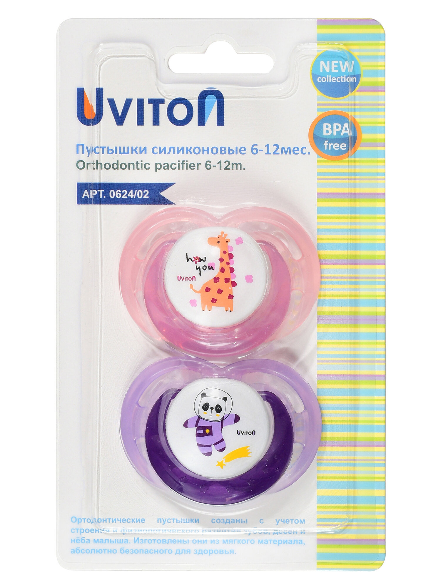 Пустышка Uviton, ортодонтические, силикон, для 6-12мес, 2шт