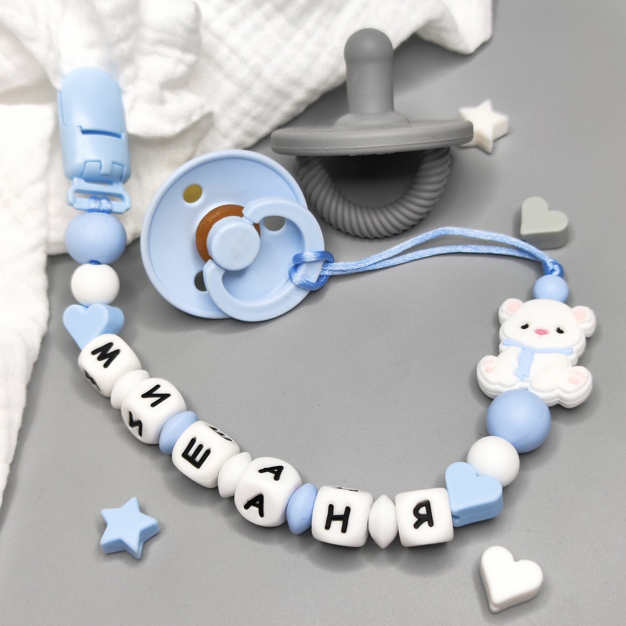 Именной силиконовый держатель для пустышки - Михаил, Миша, Миша, Мишаня, Мишутка интересное: