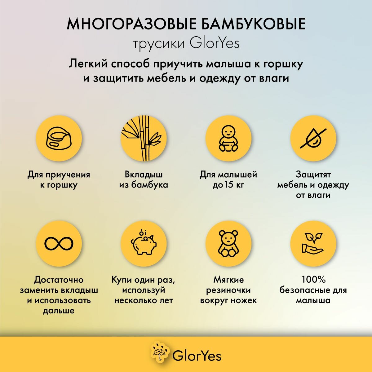 СохранитьМногоразовые трусики для приучения к горшку GlorYes! Волна 10-20 кг + бамбуковый вкладыш интересное: