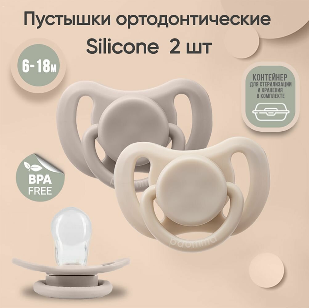 Пустышки ортодонтические Paomma, силикон, от 6 мес, 2 шт интересное: