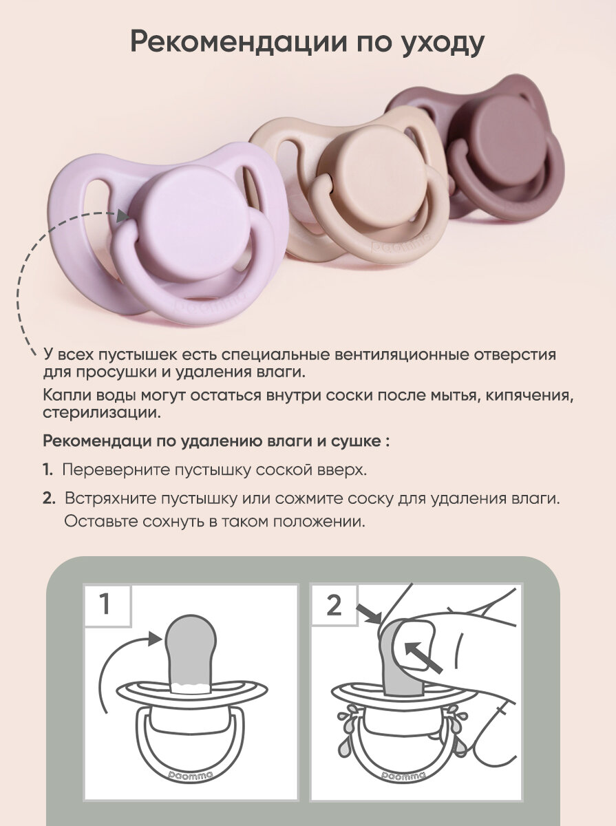 Ортодонтическая пустышка Paomma, силикон, 6-18 месяцев, 2 штуки интересное: