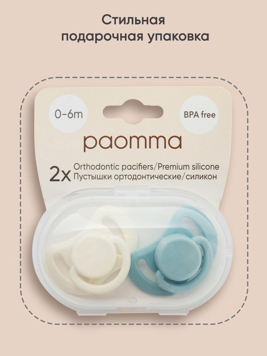 Купить Ортодонтическая пустышка Paomma, силикон, 6-18 месяцев, 2 штуки