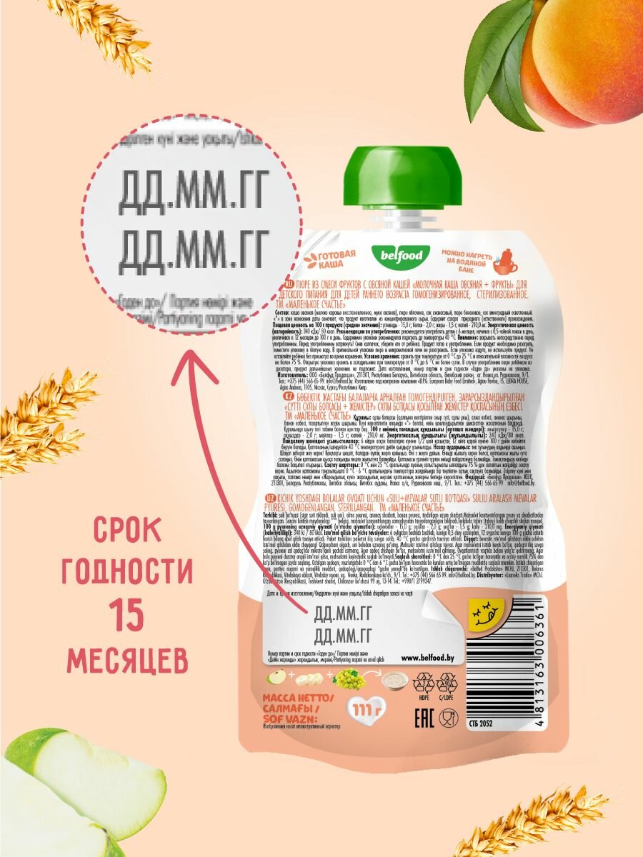 Пюре фруктовое с молочной кашей Маленькое Счастье овсяная + фрукты 111 гр x 12 шт с 6 месяцев интересное: