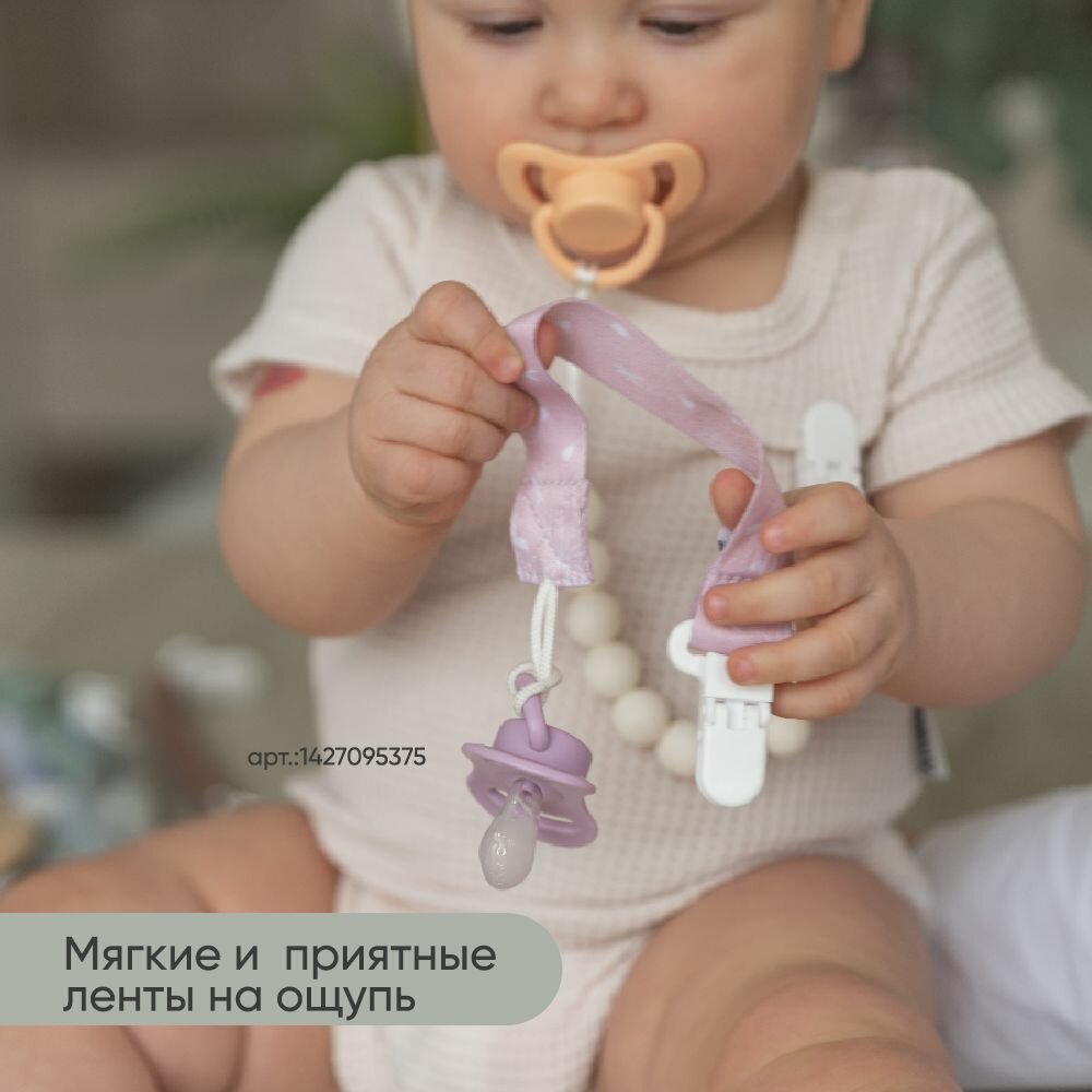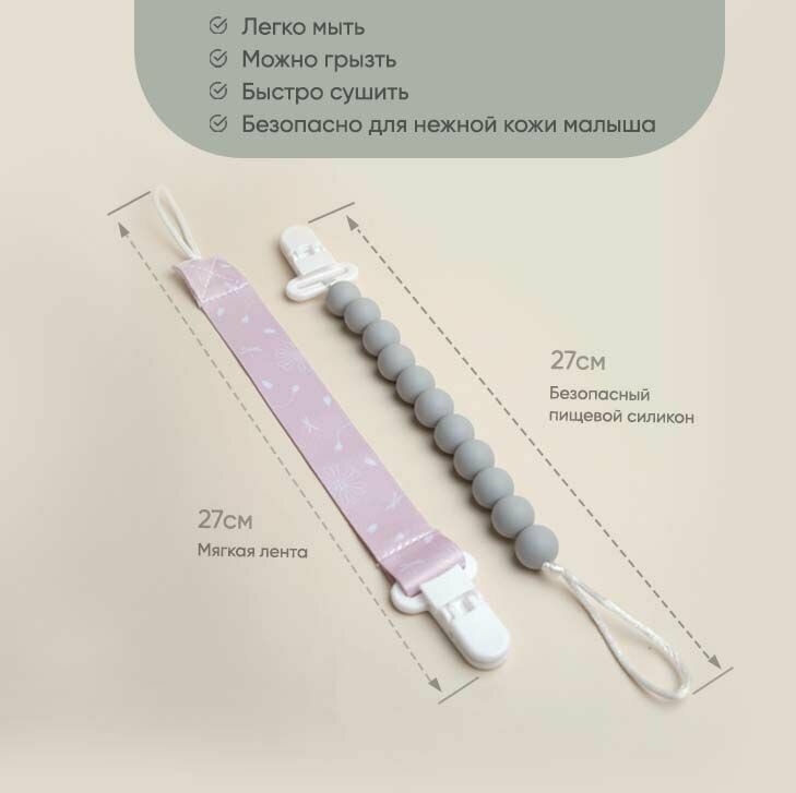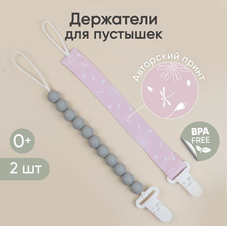 Держатели для пустышки Paomma, силикон, ткань, 2шт, цвет zephir light grey интересное: