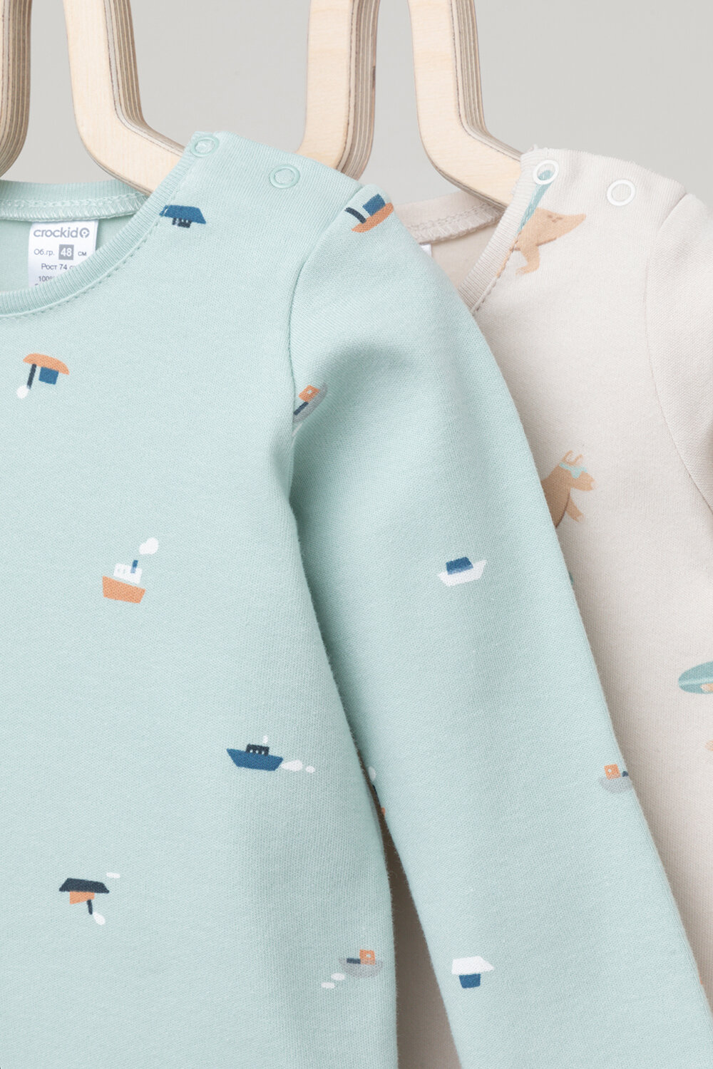 Боди crockid К 6342-2уп/серфинг,маленькие кораблики, комплект из 2 шт., размер 48/74, голубой