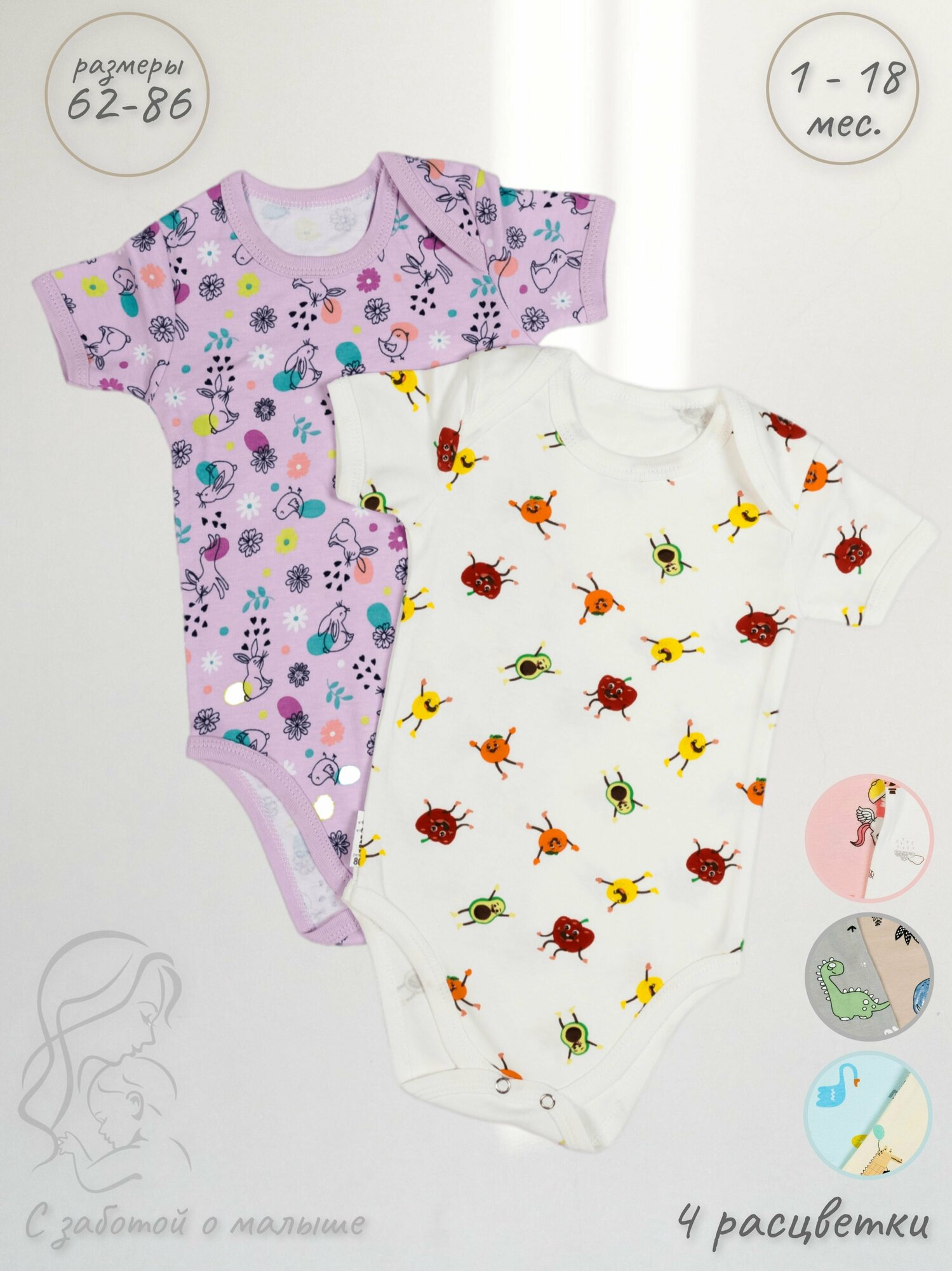 Боди Базовая коллекция, комплект из 2 шт., размер 62, сиреневый