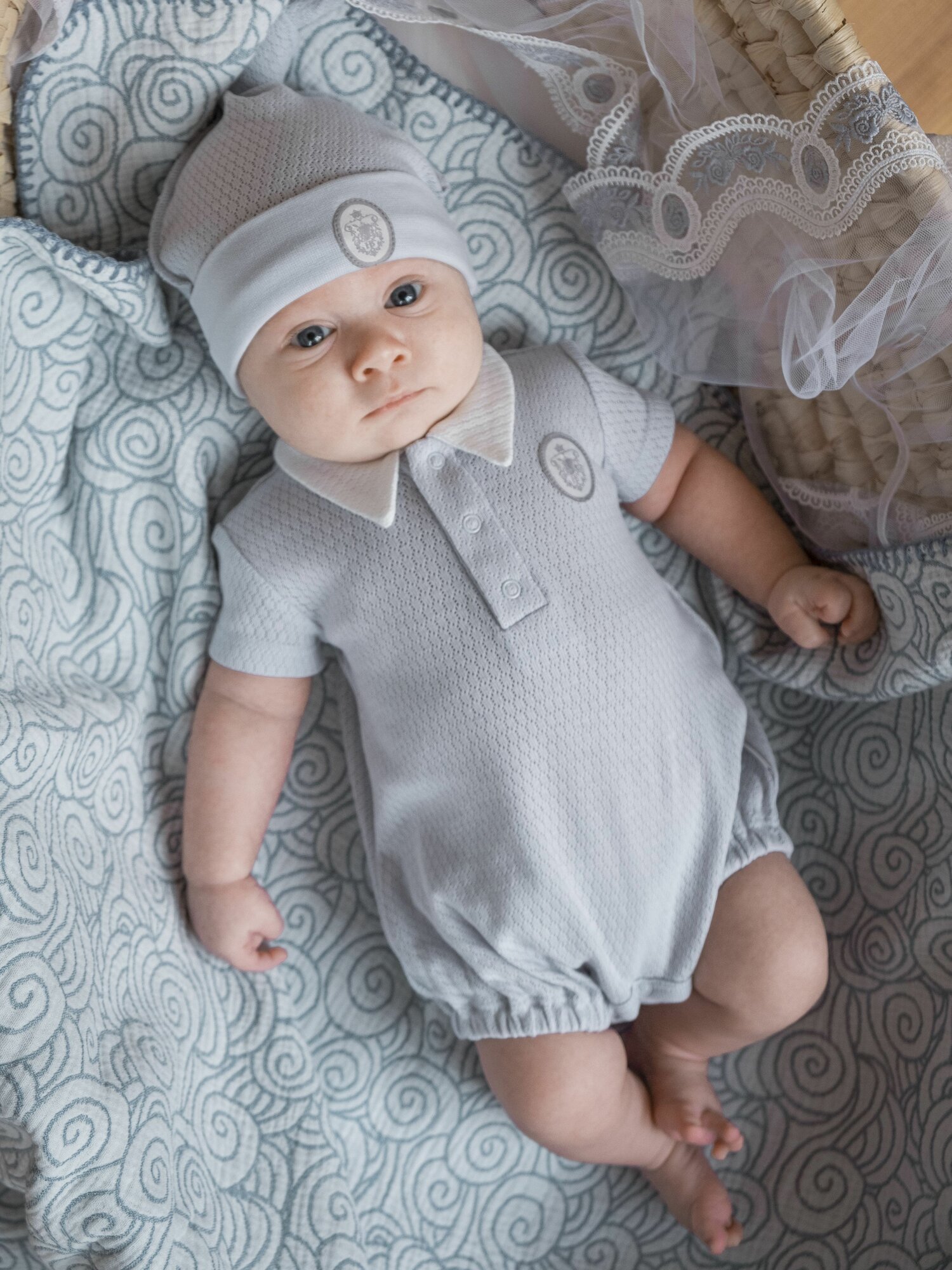 Песочник Наследникъ Выжанова, размер 86-52, серо-голубой интересное: