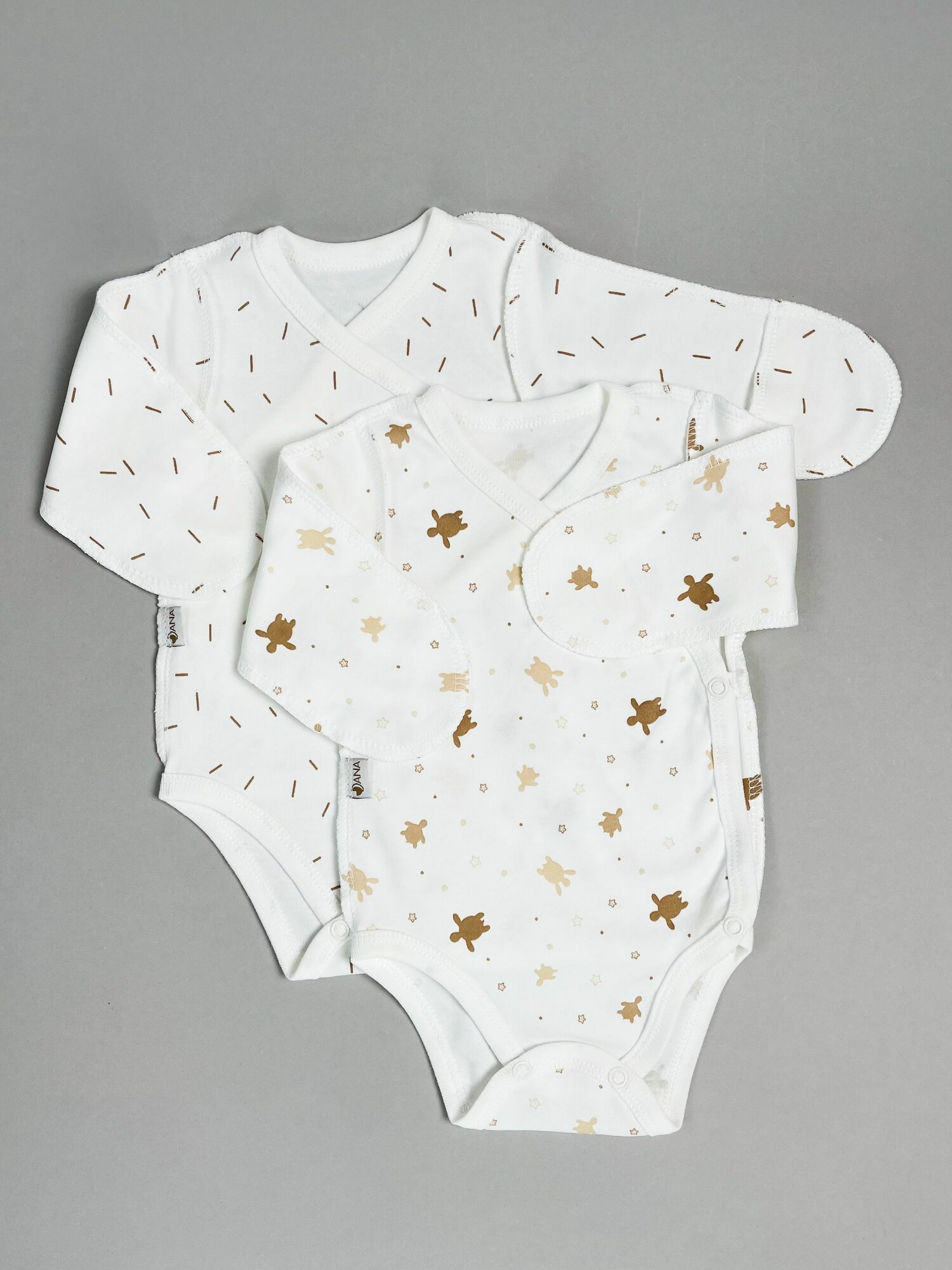 Боди DanaBaby Весна-лето 2025, комплект из 2 шт., размер 18 (56-62) 2-3 мес., коричневый, белый, серый