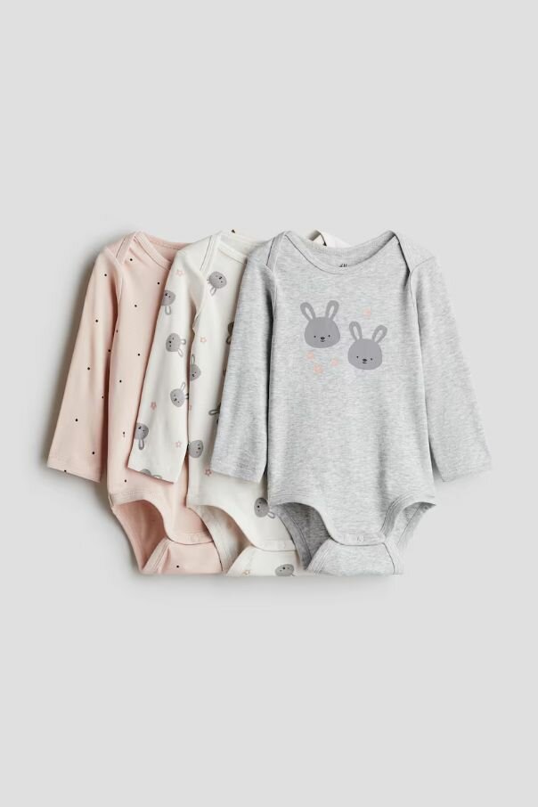 Боди H&M Базовая коллекция, комплект из 3 шт., размер 92 (1,5-2 года), розовый, белый, серый
